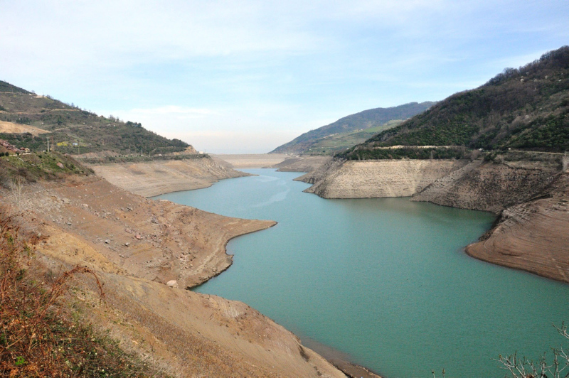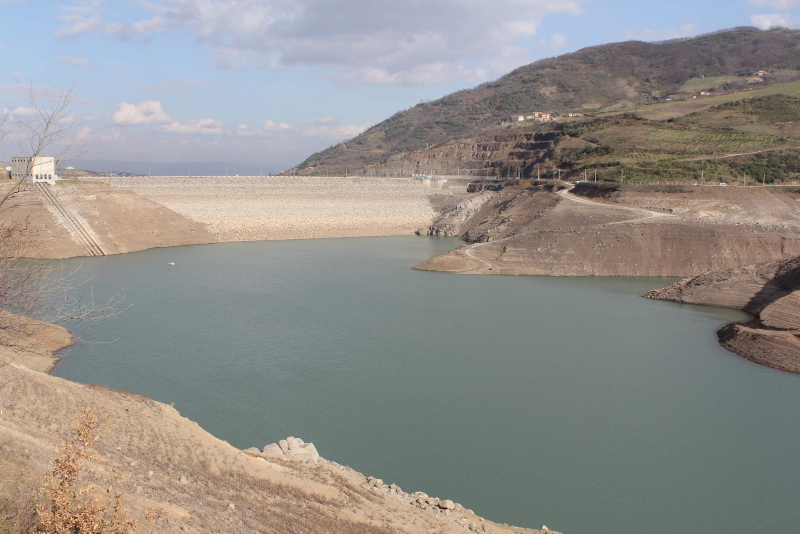 Başiskele ilçesinde bulunan Yuvacık Barajı'nda, yeterli yağışın olmaması nedeniyle su seviyesi düştü.
