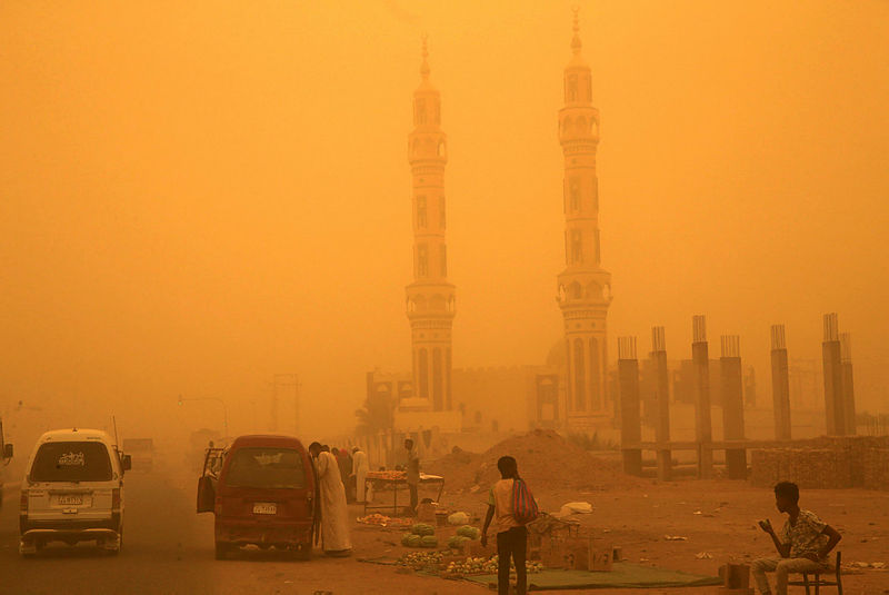 Sudan'ın başkenti Hartum'da kum fırtınası hayatı olumsuz etkiledi. Sudan Meteoroloji Müdürlüğünden yapılan açıklamada, sabah saatlerinde başlayan fırtınanın hafta sonuna kadar etkili olacağı duyuruldu. Açıklamada, görüş mesafesinin 10-15 metreye kadar düştüğü belirtilerek, dışarıya çıkmak isteyenlere maske takmaları uyarısı yapıldı. Fırtına nedeniyle başkent sokaklarında ıssız bir görüntü oluştu.