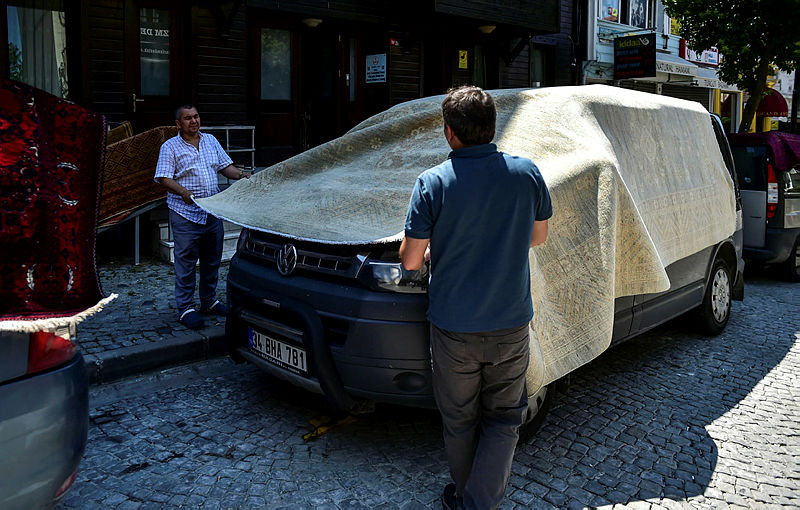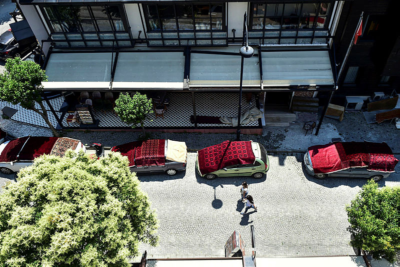 Corona Virüs (Covid-19) salgını nedeniyle 3 ay boyunca Sultanahmet'te kapalı kalan mağazanın deposundaki halıların bir çoğu nemlendi. İş yeri sahibi ise bu soruna ilginç bir çözüm bularak halıları etraftaki arabaların ve çatıların üzerine serdi. Havadan çekilen görüntülerde onlarca arabaların üzerine kırmızı halıların serilmesi halı tarlalarını anımsattı.