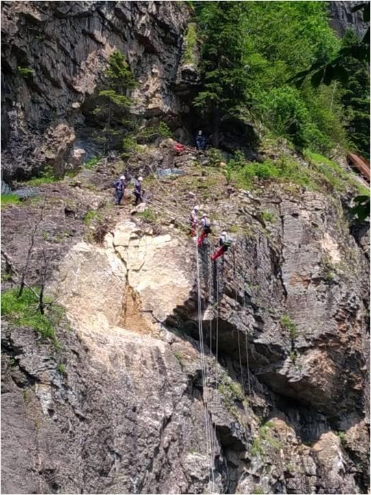 Manastırda, kaya ve buz kütlelerinin düşerek olumsuzluğa yol açmaması için endüstriyel dağcılardan oluşan özel ekiple sürdürülen 'yamaç ıslah çalışması'nın büyük bölümü tamamlandı.