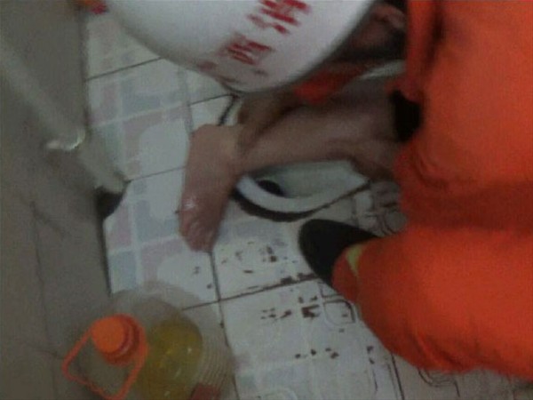 Çin'in Nanning şehrinde 18 Nisan günü yaşanan olayda ismi açıklanmayan kadın, umumi tuvaleti kullandıktan sonra bacağını alaturka tipi tuvaletin içine sıkıştırdı.