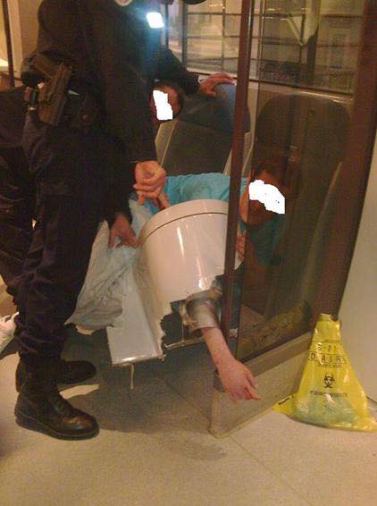 Kadın ayak bileğini tuvalet deliğine sıkıştırınca, kurtarmaya çalışırken diz kapağını da inciterek acı içinde kıvranmaya ve bağırmaya başladı. Tuvalette olduğu sırada üzerinde bulunan cep telefonuyla acil yardım hattını arayan kadının imdadına itfaiye ekipleri yetişti. Ne yazık ki itfaiye ekipleri gördükleri manzara karşısında o kadar da hazırlıklı değildi.
