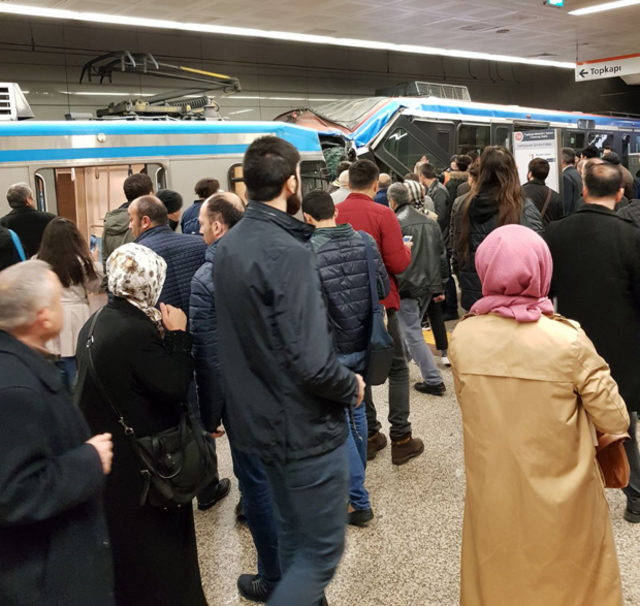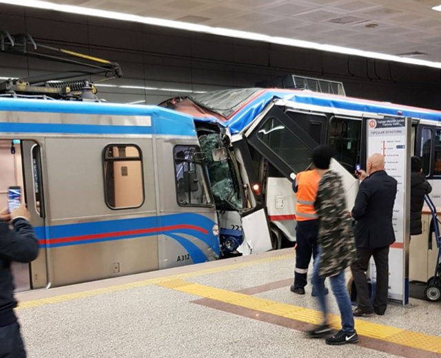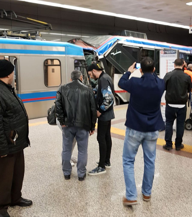 Topçular istasyonunda bir tramvay duraktaki başka bir tramvaya çarptı.