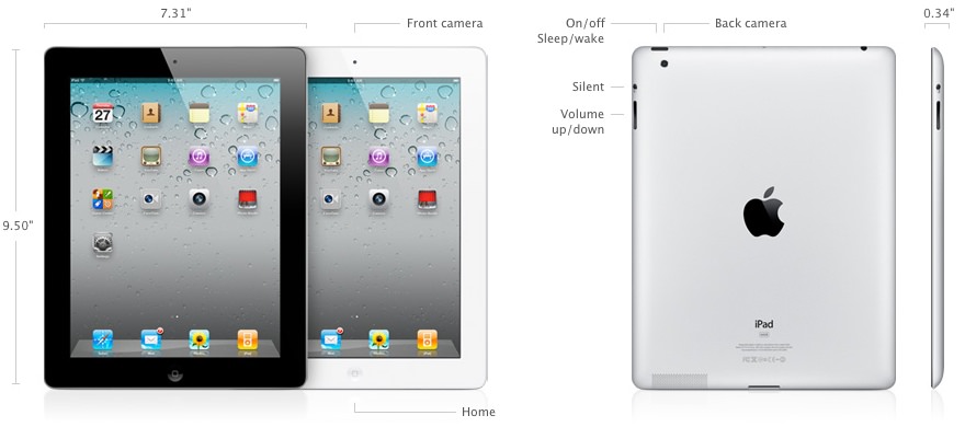 iPad 2: 2011 Mart ayında duyurulan iPad 2, bir önceki modele göre %33 daha ince, iki kat daha hızlı Apple A5 işlemci ve 9 kat daha hızlı grafik işlemci kullanıyor.