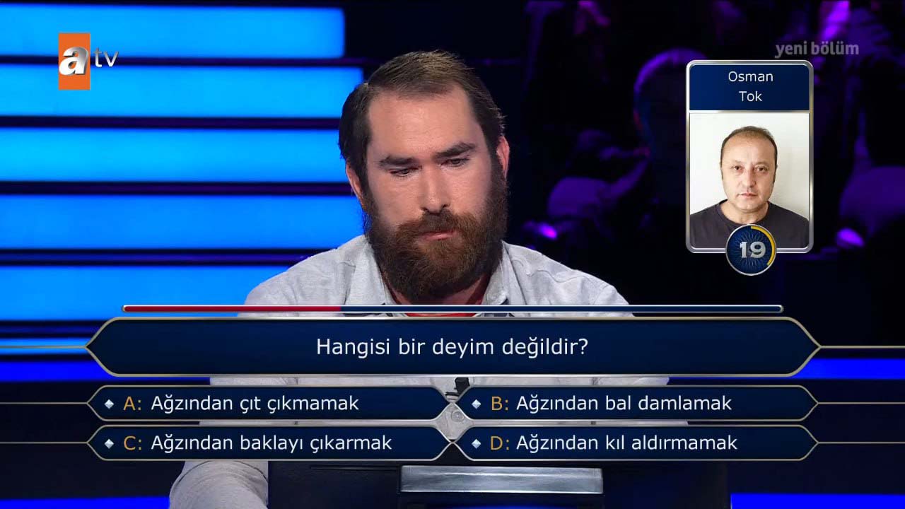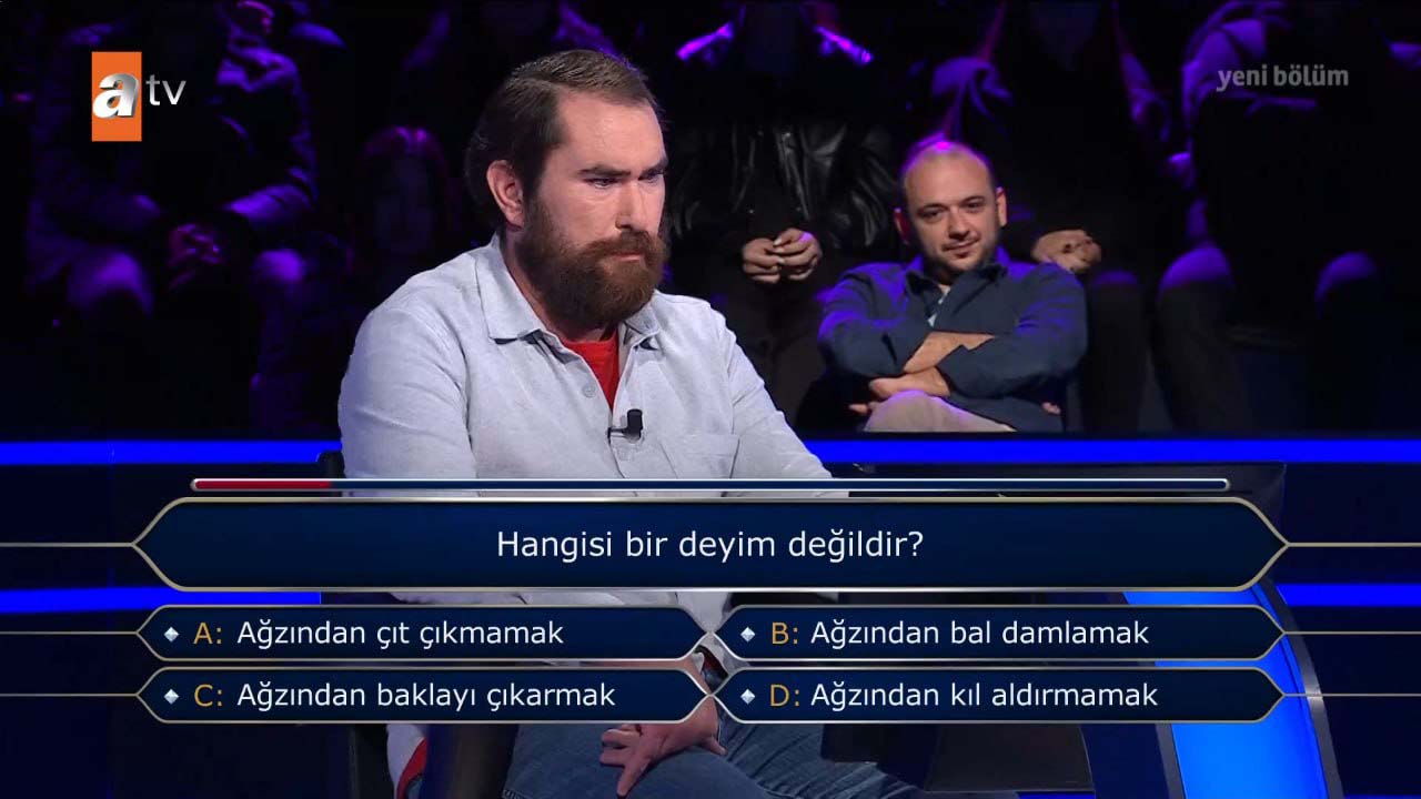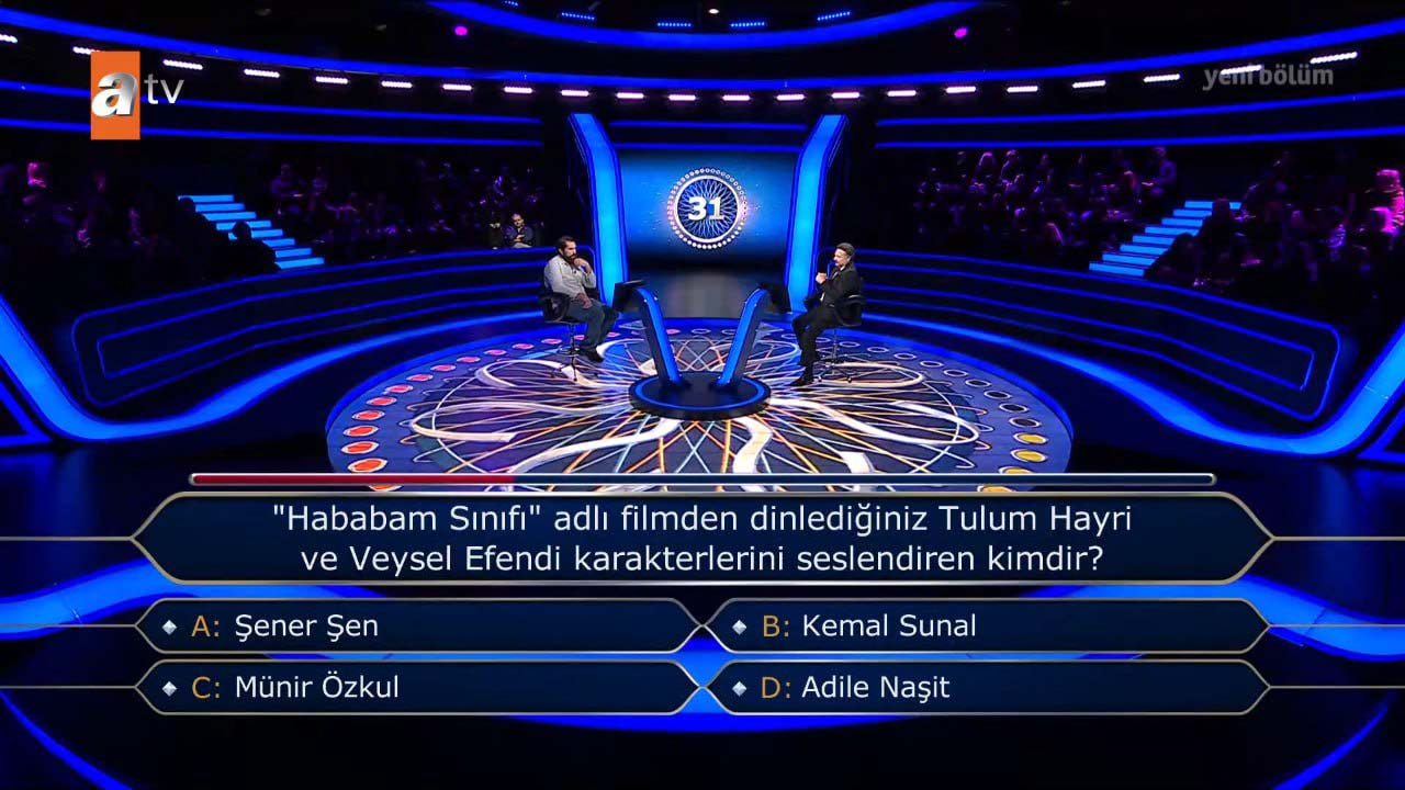 ATV'nin beğeniyle izlenen ve reytingleri altüst eden programlarından Kim Milyoner Olmak İster, her hafta olduğu gibi bu hafta da izleyicileri ekran başına kilitledi.