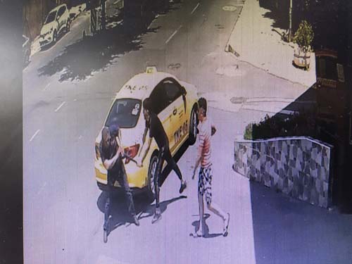 Beylikdüzü'nde annesine sarkıntılık ettiği iddia edilen taksiciyi döven genç saniye saniye kameralara yansıdı. Görüntüde, taksi sürücüsünün Dilek Ş. isimli kadının aşağıya para indirmesini beklediği görülüyor.