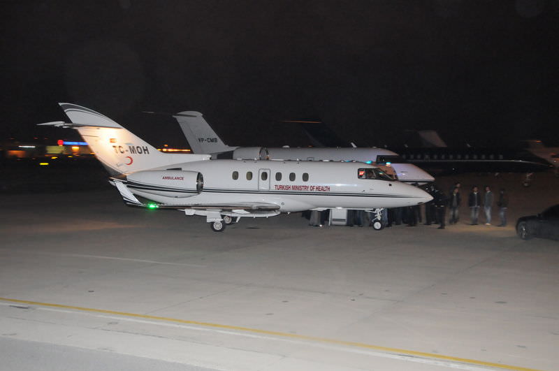 Sağlık Bakanlığı'na ait ambulans uçakla Münich'e götürülen sanatçının kameralara yansıyan görüntülerinde saçının kesildiği ve beyazlaştığı görüldü.
