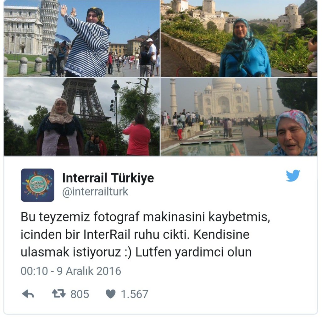 Araçlarına aldıkları kadına ulaşmak için fotoğraf makinesindeki fotoğrafları sosyal medyaya yüklemeyi düşünen çift, makineyi açtıklarında şaşkınlıklarını gizleyemedi. 60'lı yaşlarında olan Ayşe Teyzenin tek başına dünyayı gezerken çektiği fotoğrafları gören çift, bu fotoğrafları sosyal medyada paylaştı. İnternet kullanıcıları da Hindistan, Fransa ve İtalya gibi ülkelerde fotoğraf çekilen Ayşe Teyzenin bulunması için adeta seferber oldu.