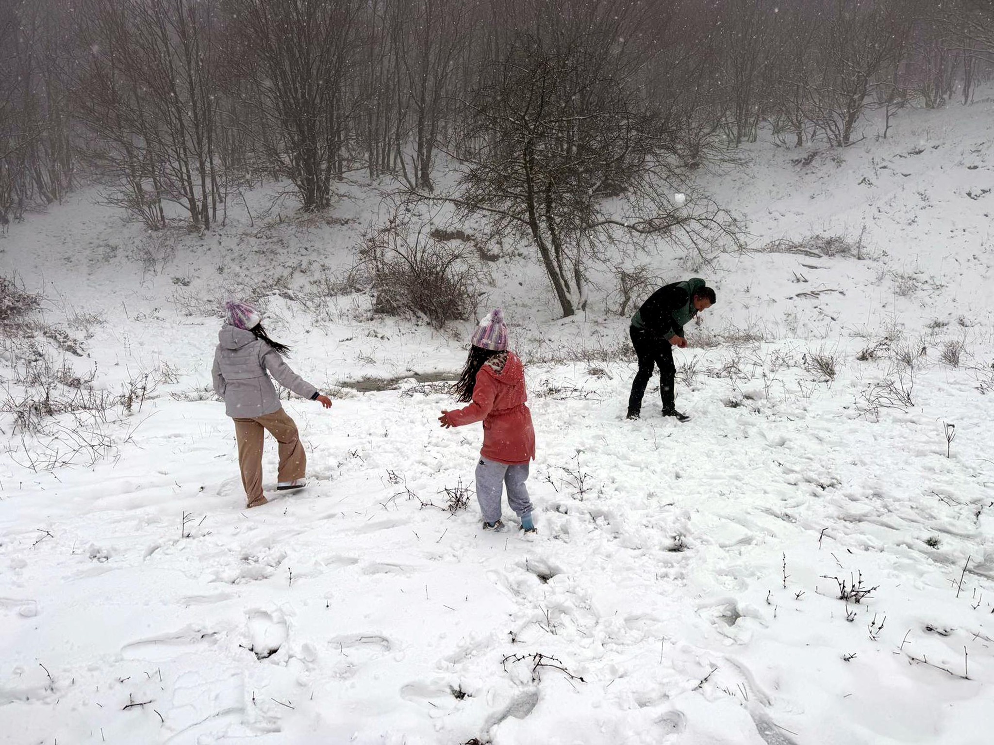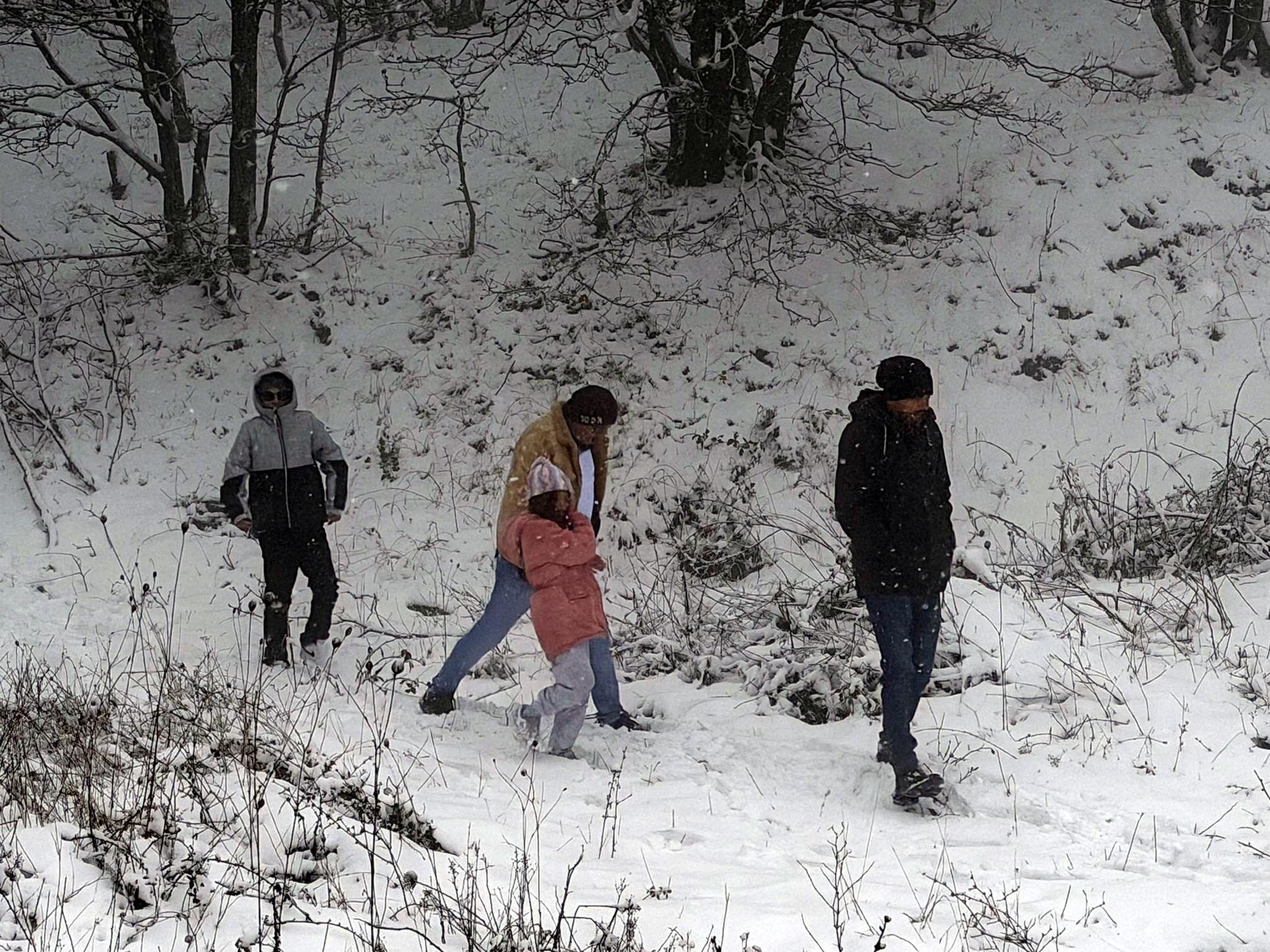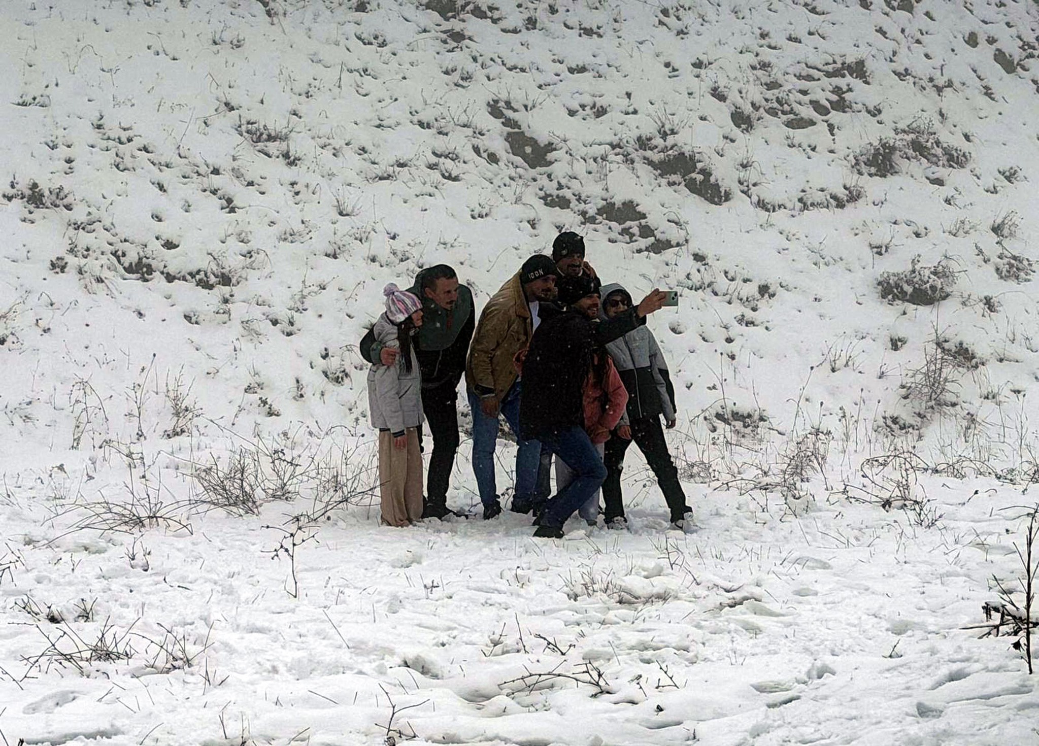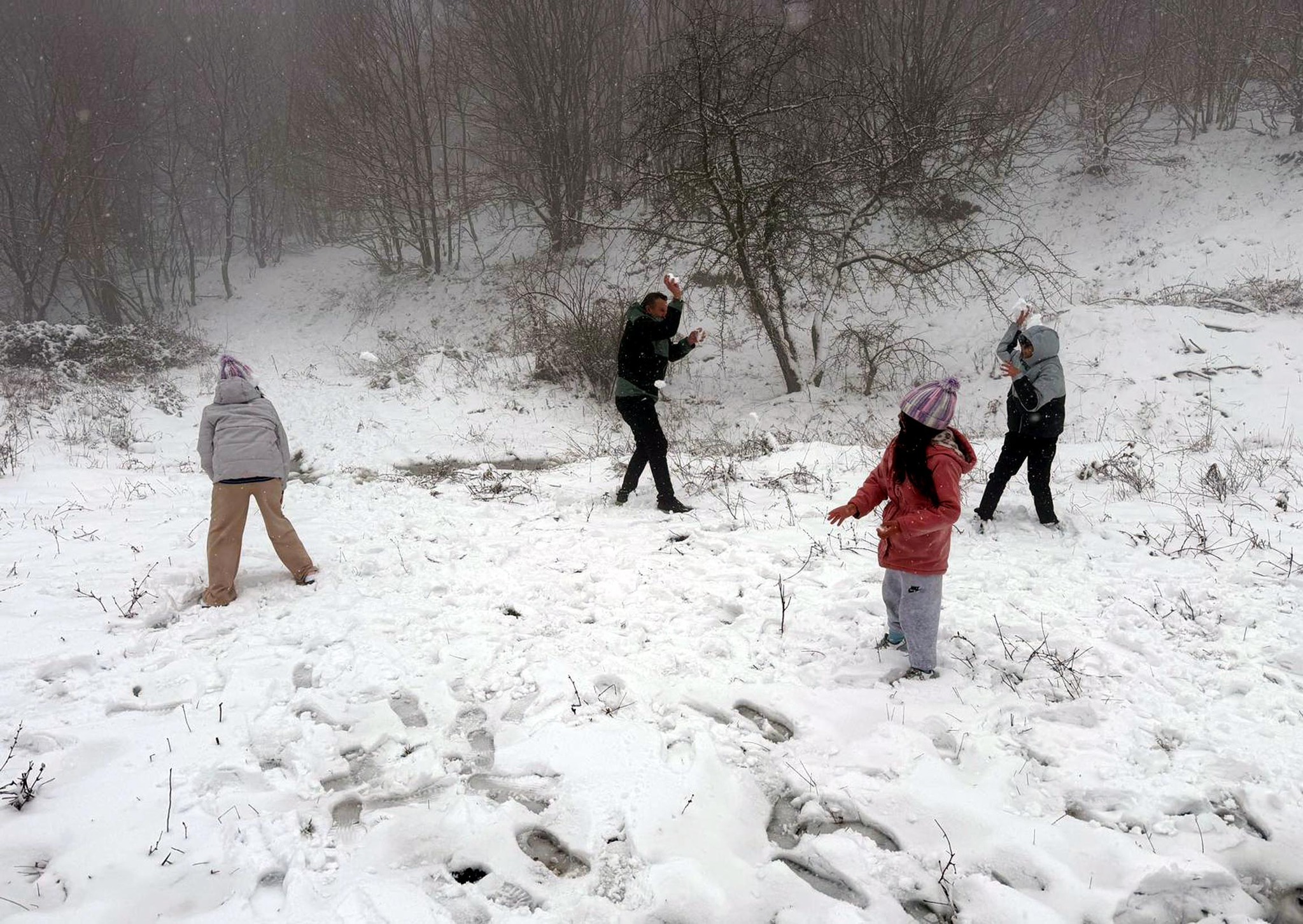 Ramazan Bayramı tatili nedeniyle, beyaza bürünen bölgeye çocuklarıyla gelenler kar topu oynadı ve yürüyüş yaptı.