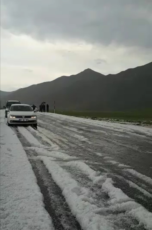 Hava değişimlerinden etkilenen şehirlerden biri de Van oldu. Van'daki şiddetli yağmur yerini doluya bıraktı. Van'da Temmuz ayında inanılmaz manzara yaşandı. Şiddetli yağmurun ardından gelen dolu yüzünden yollar bembeyaz oldu.