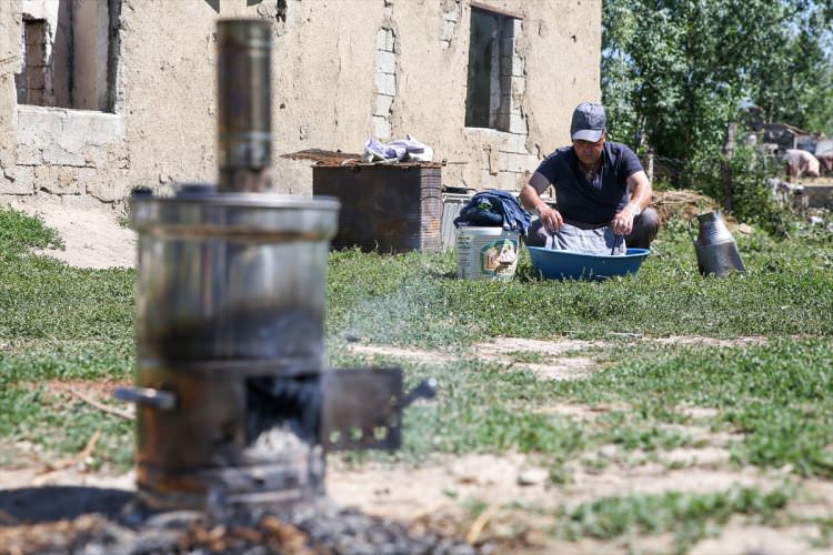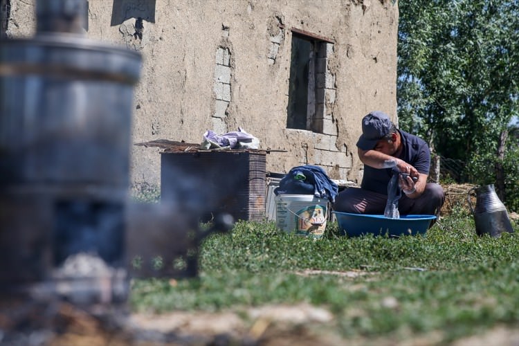 Yüksekova'da, evi terör saldırıları nedeniyle kullanılamaz hale gelen Hamza Aykut, bir yandan çobanlık yaparak ailesinin geçimini sağlıyor, diğer yandan da eşinin rahatsızlığı nedeniyle ev işlerini yapıyor.