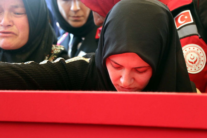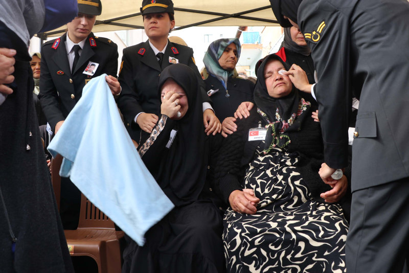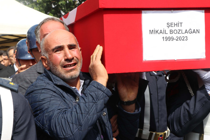 Kayseri'de, teröristler tarafından öldürülüp aracı gasbedilerek Ankara'daki bombalı saldırı girişiminde kullanılan 1 çocuk babası veteriner Mikail Bozlağan, toprağa verildi. Cenazede şehidin tabutuna sarılan annesi Fatma ve eşi Eda Nur yürekleri dağladı.