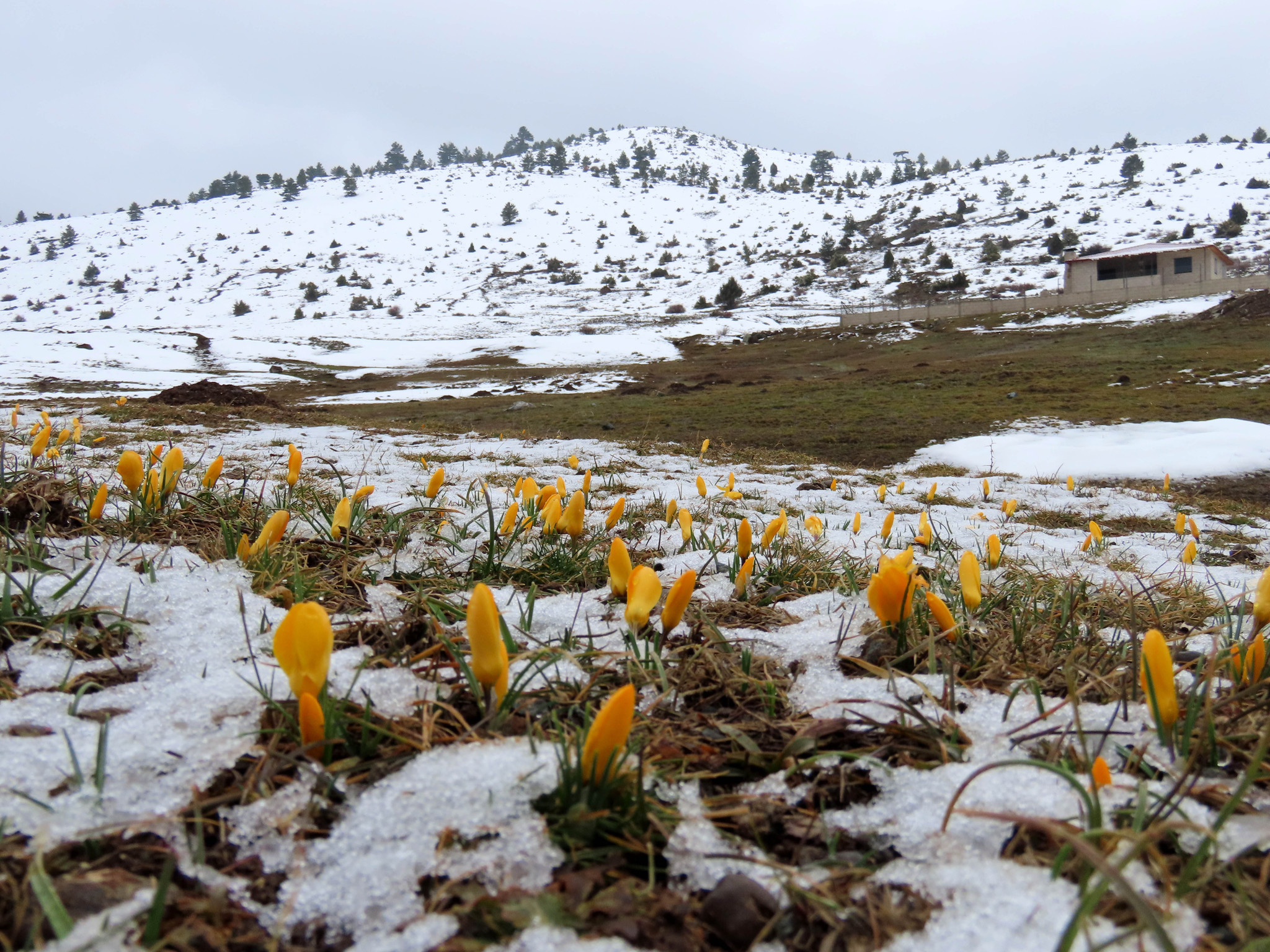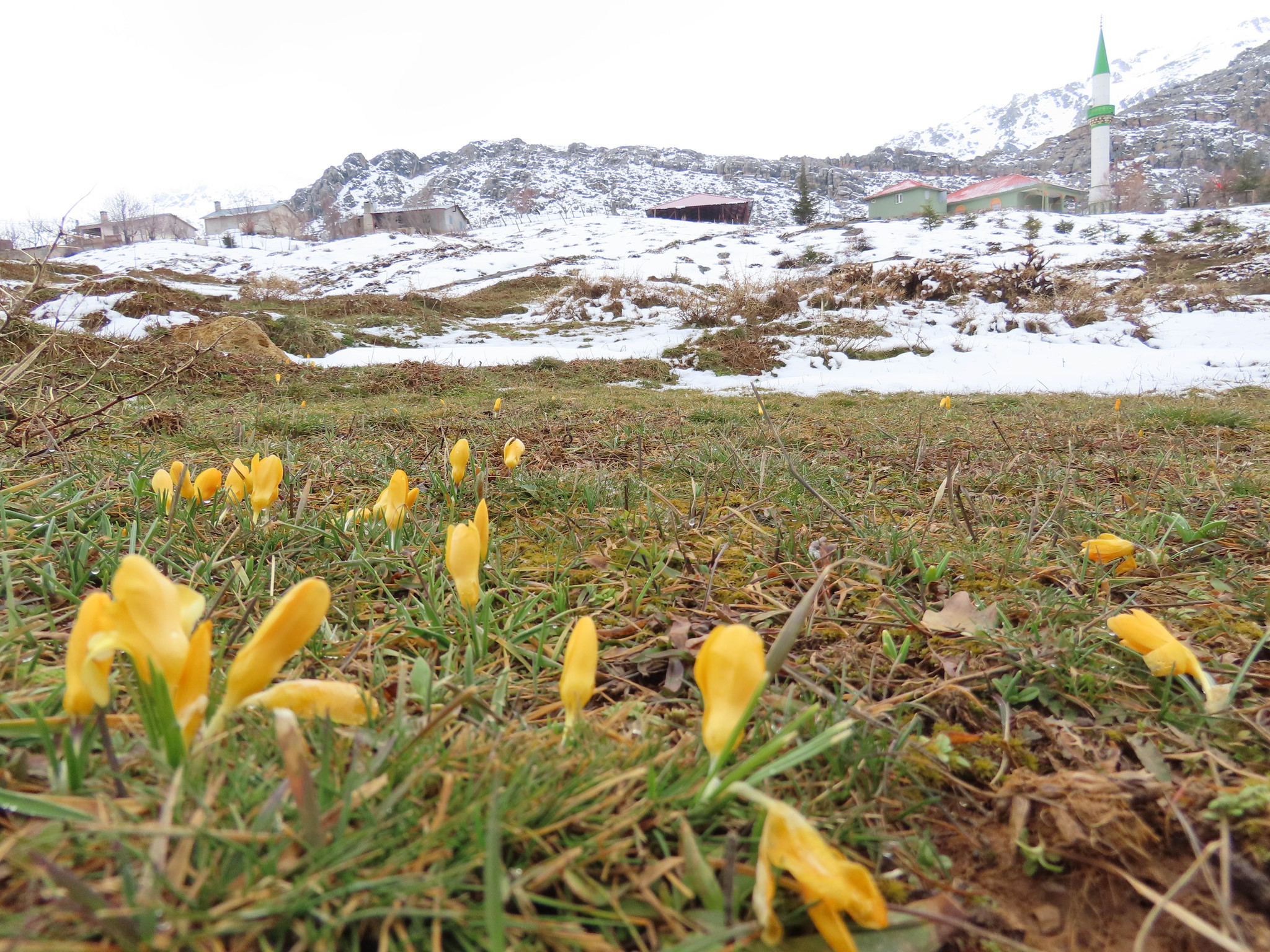 Toros Dağları'nın Antalya-Konya sınırındaki zirve yaylalarında karlar erimeye başlarken; sarıçiğdem, nevruz ve sümbüller doğayı renklendirdi.