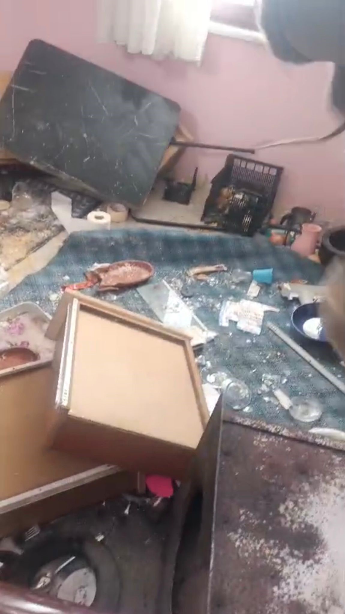 Evin tüm dolaplarının, mutfak tezgahının, lavabonun eve giren ayı tarafından kırılıp parçalandığını gören Çetinkaya, eve üst kattaki camdan giren ayının patilerinin yaralanması ve kanaması nedeniyle yerde kan izlerini gördü.