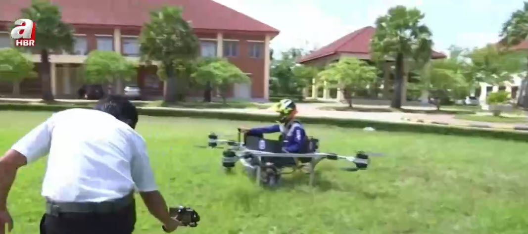 Kamboçya'da bir grup üniversite öğrencisi başkent ''Punom Pen'' in bir türlü çözülemeyen trafiğinden ilham alarak operatörüyle birlikte havalanabilen bir drone prototipi tasarladı.