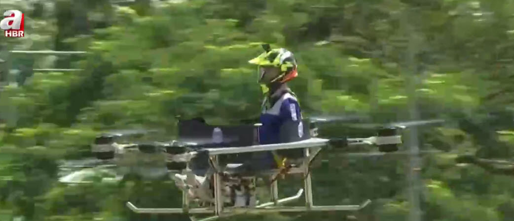 60 kilo ve altındaki ağırlıkta bir insanı taşıyabilen drone yerden dört metre yükseklikte on dakika boyunca uçabiliyor.