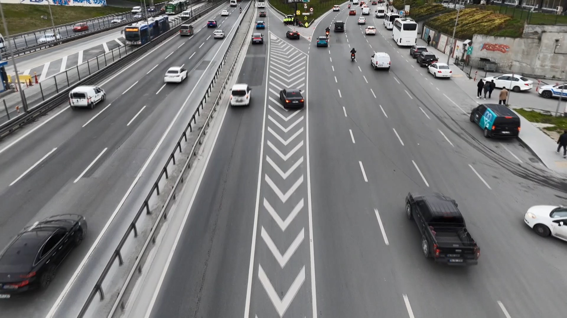 Zeytinburnu Cevizlibağ D-100 yanyolunda transit yola bağlanırken ofset taralı alan ihlali yapan sürücüler, dron destekli denetimle tespit edildi. Trafik Denetleme Şube Müdürlüğü ekipleri tarafından kurulan uygulama noktasında durdurulan sürücülere para cezası kesildi. Denetim noktasında durdurulan sürücü Serkan Çimenli, " "Özellikle kaynakçılar emniyet şeridini kullananlara şimdiki cezalar bile az 500 bin, 1 milyon yazılmalı." Şeklinde konuştu.