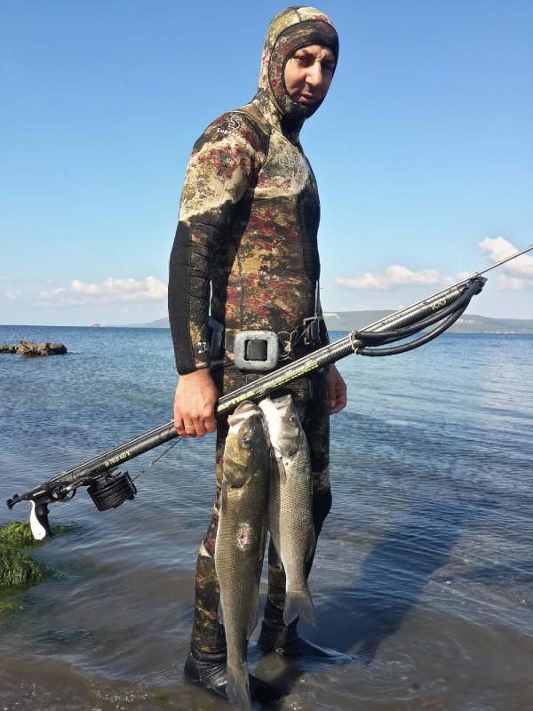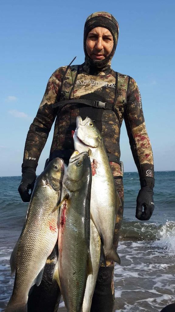 Tüpsüz dalışta, boyu büyüklüğünde balık avlıyor