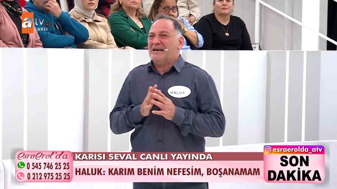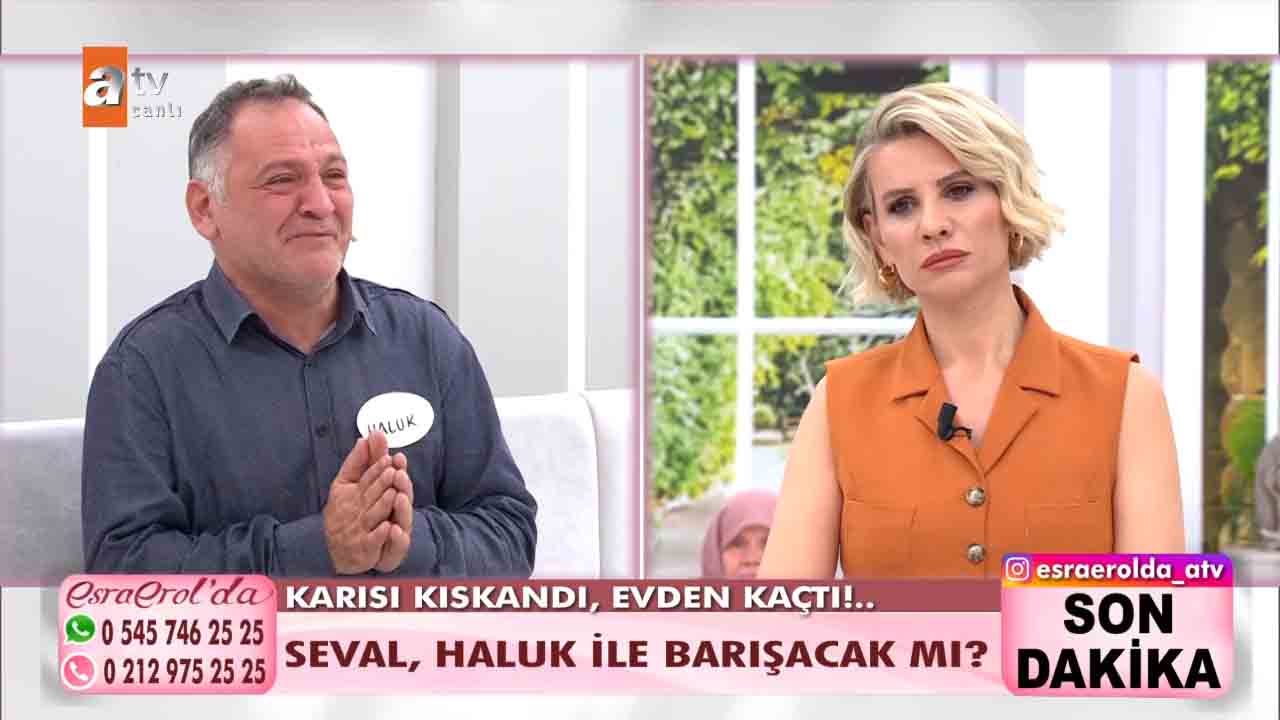 ATV'nin beğeniyle izlenen reyting rekortmeni programlarından Esra Erol'da her hafta olduğu gibi bu hafta da çok konuşulan bir olaya imza attı. Esra Erol'da bu hafta akıllara durgunluk veren bir olay yaşandı. Bugün programa Haluk isimli bir katılımcının hikayesi programa damga vurdu. Haluk, yanlışlıkla uygunsuz bir linke tıklayınca çok sevdiği eşi Seval, 5 yıllık evliliklerini bitirmek için boşanma davası açtı. Esra Erol'dan yardım isteyen Haluk Bey, gözyaşları içerisinde eşi Seval Hanım'dan son bir şans istedi. Güveninin kalmadığını söyleyen eş Seval ise , "Davamı açtım, uzatmak istemiyorum" dedi. Bunun üzerine Haluk, bir kere daha şans ver diyerek canlı yayında gözyaşlarına boğuldu. İşte Türkiye'nin konuştuğu o anlar...