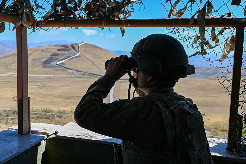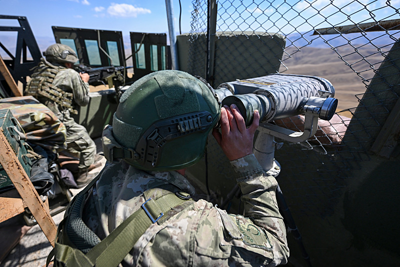 İnşa edilen elektro optik ve asansörlü kulelere monte edilen gözetleme cihazları ve radarlarla sınır hattını gözetim altında tutan Mehmetçik, sarp ve engebeli coğrafyada 7 gün 24 saat görev yapıyor.