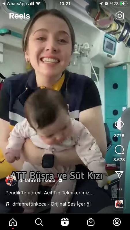 İstanbul Pendik'te terk edilmiş bebek vakasına giden 14 aylık bebeği olan Acil Tıp Teknikeri Büşra Durmaz, kız bebeği ambulansın içinde emzirdi.