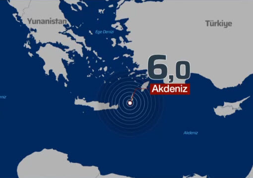 Türkiye'de deprem fırtınası sürüyor. Akdeniz'de saat 01.51'de 6,0 büyüklüğünde deprem kaydedildi.