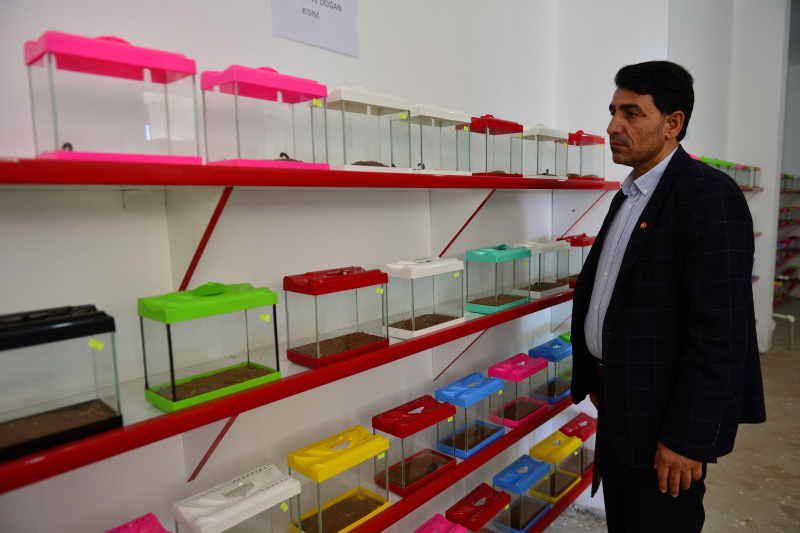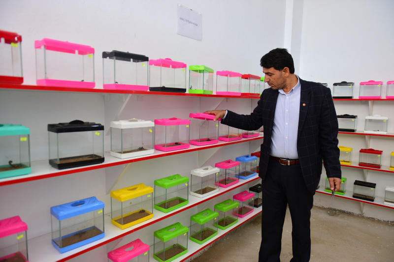 "Kara akrep" (Androctonus Crassicauda) cinslerini yetiştirmek için yaklaşık 3 yıl önce Doğa Koruma ve Milli Parklar Genel Müdürlüğünden izin alan Yılmaz, evinin altına yaklaşık 150 metrekarelik tesis kurdu ve 150 akreple işe başladı.