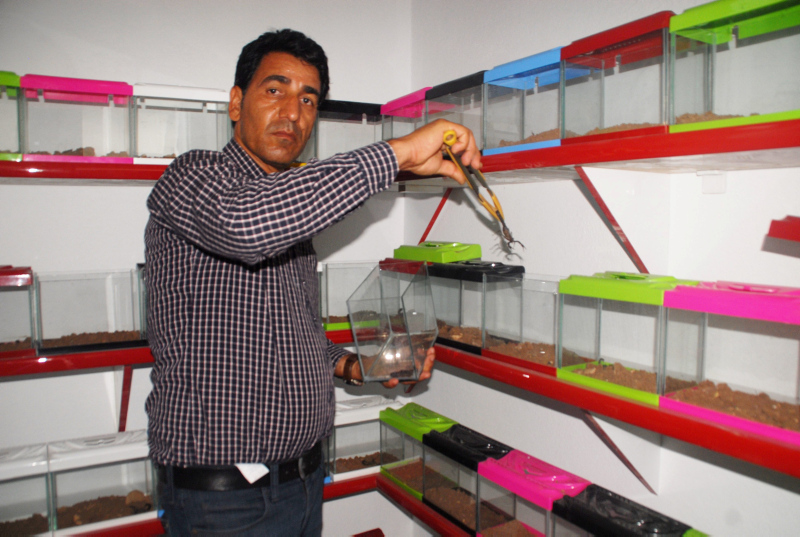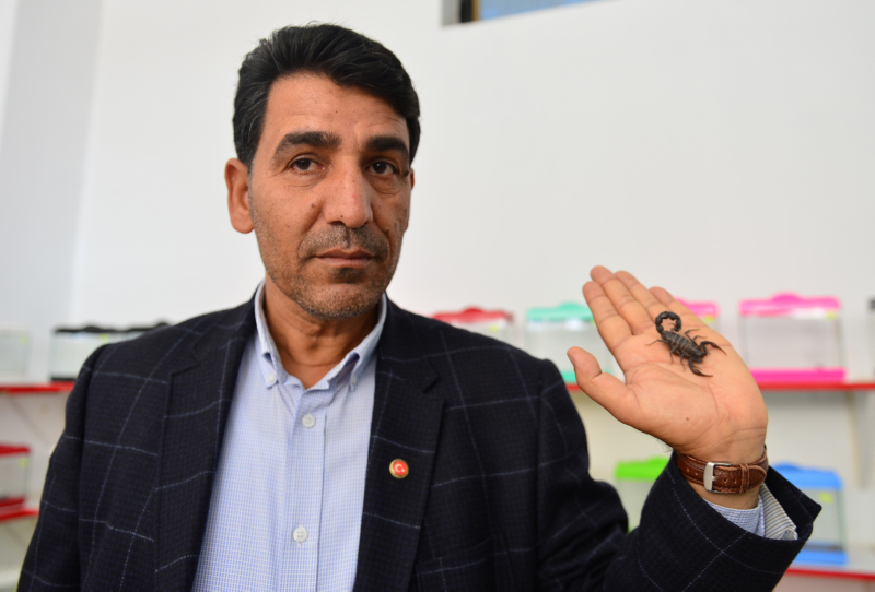 Şanlıurfa Merkez Haliliye ilçesinin kırsal Kısas Mahallesi'nde yaşayan 48 yaşındaki Ali Yılmaz, geçimini Türkiye'de az görülen ve ürkütücü bir iş olan akrep yetiştiriciliğiyle sağlıyor.