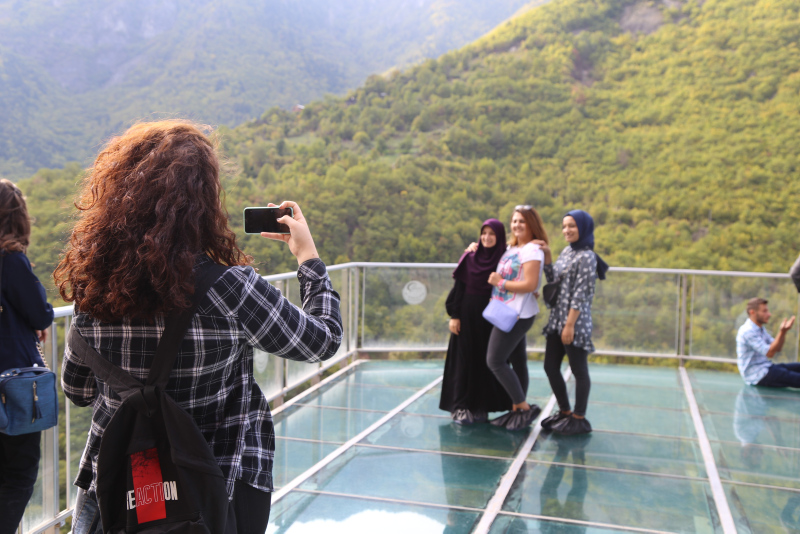 Artvin'deki doğa harikası Hatila Vadisi Milli Parkında bulunan 220 metre yükseklikte sarp kayalara monte edilen Cam Seyir Terası, Ekim ayı itibariyle 29 bin kişi tarafından ziyaret edildi.