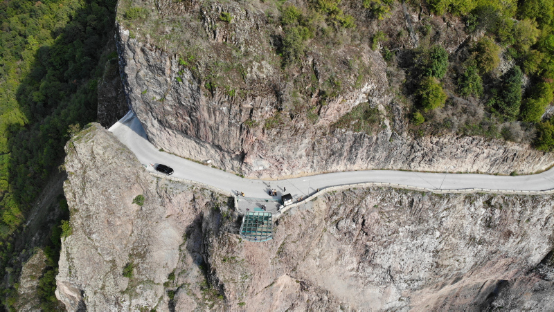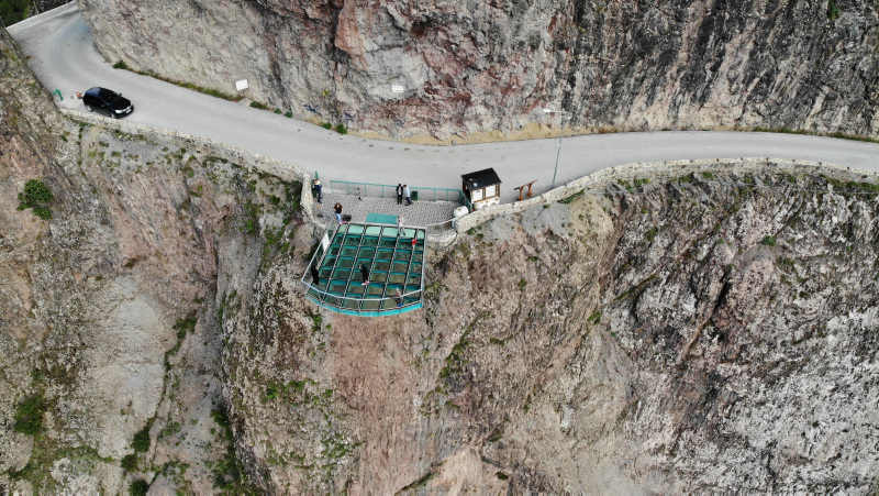 Kaya birleşim noktasından 15 metrelik mesafeye uzanan cam seyir terası, 7 metre uzunlukta ve 7,5 metre genişliğe sahip.