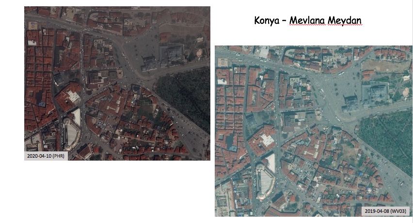 İstanbul Teknik Üniversitesi (İTÜ) Uydu Haberleşme ve Uzaktan Algılama Merkezince (UHUZAM), yeni tip koronavirüs (Kovid-19) salgını öncesi ve sonrası uydu aracılığıyla çekilen görüntüler, tedbirlere uyulduğunu, Türkiye'deki kalabalık meydanlar, sahil yolları ve işlek caddelerin gözle görülür bir şekilde boşaldığını ortaya koydu