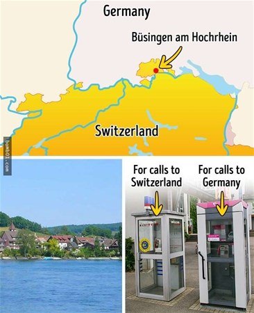 Büsingen İsviçre toprakları içinde bulunan, ancak Almanya'ya ait bir kasabadır. İsviçre'de bulunan bir Alman şehridir ve kasaba ekonomisi İsviçre tarafından yönetilmektedir.Para birimi olarak İsviçre Frangı kullanıyorlar. Biri İsviçre'den diğeri Almanya'dan iki posta ve iki telefon kodu bulunmaktadır.