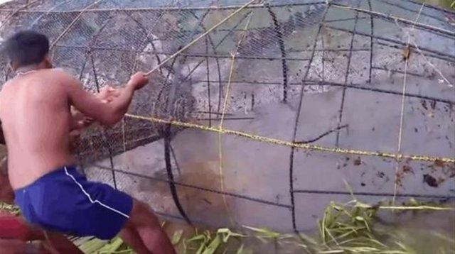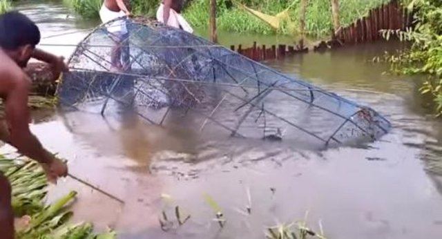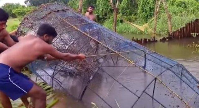 Gölde kafes tekniği ile balık avlayan balıkçılar, çektikleri görüntüler ile herkesi hayrete düşürdü