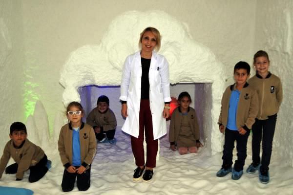 İzmit Alikahya Mahallesi'nde bulunan özel bir okulda tuz mağaralarından alınan 2 ton tuzla yerden tavana kadar kaplanan odada ana okulu öğrencileri haftada 20'şer dakikadan iki seans, ilkokul öğrencileri ise 40 dakika 1 seans tuz odasına girerken, derslerini de yapıyorlar.