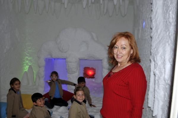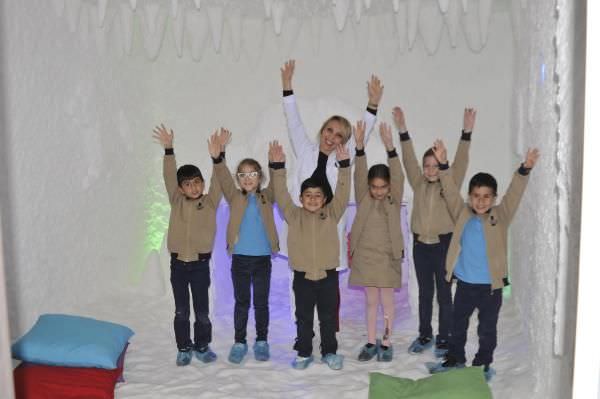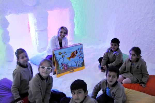 İzmit'te özel bir okulda 2 ton tuz kullanılarak oluşturulan tuz terapi odasında öğrenciler hem ders yapıyor, hem terapi görüyor.