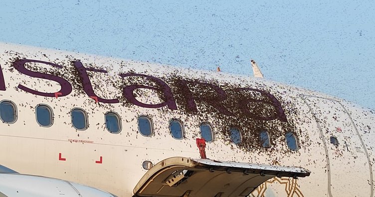 Ev, ağaç, çatı gibi yerlere yuva yapan arılar bu kez şaşırttı. Hindistan'ın Kolkata Havalimanı'nda park halindeki bir uçağı yuva olarak seçen arılar havalimanında zor anlar yaşanmasına neden oldu.