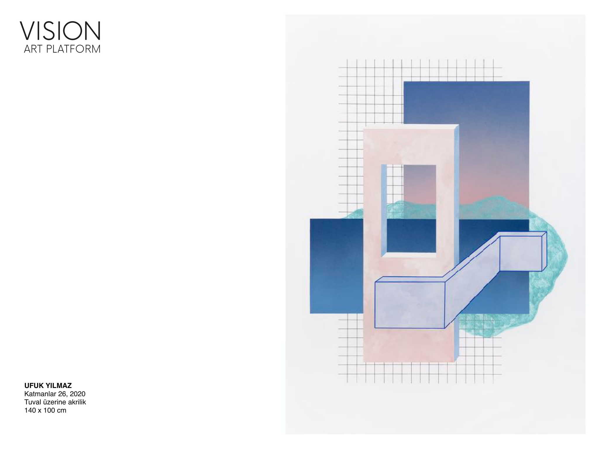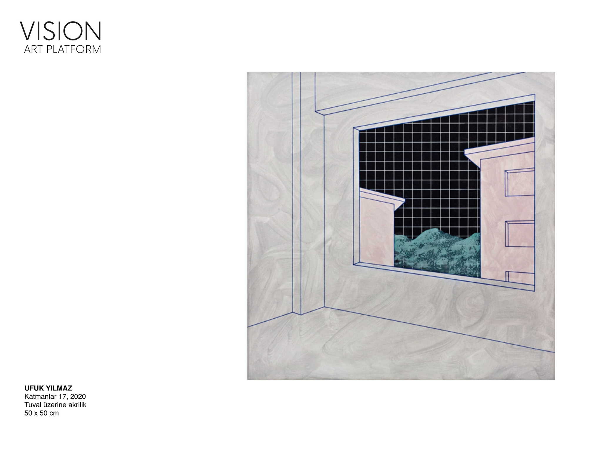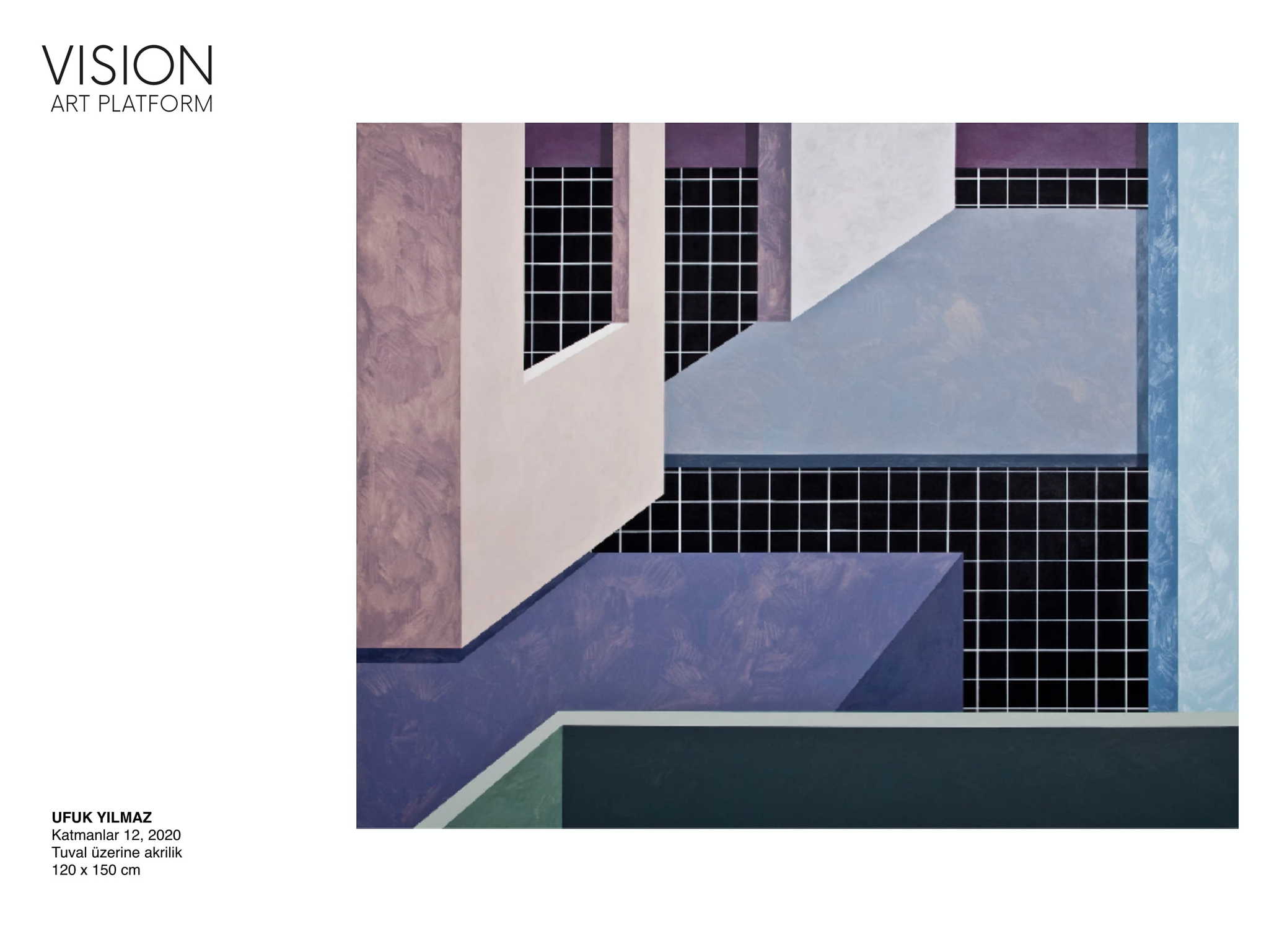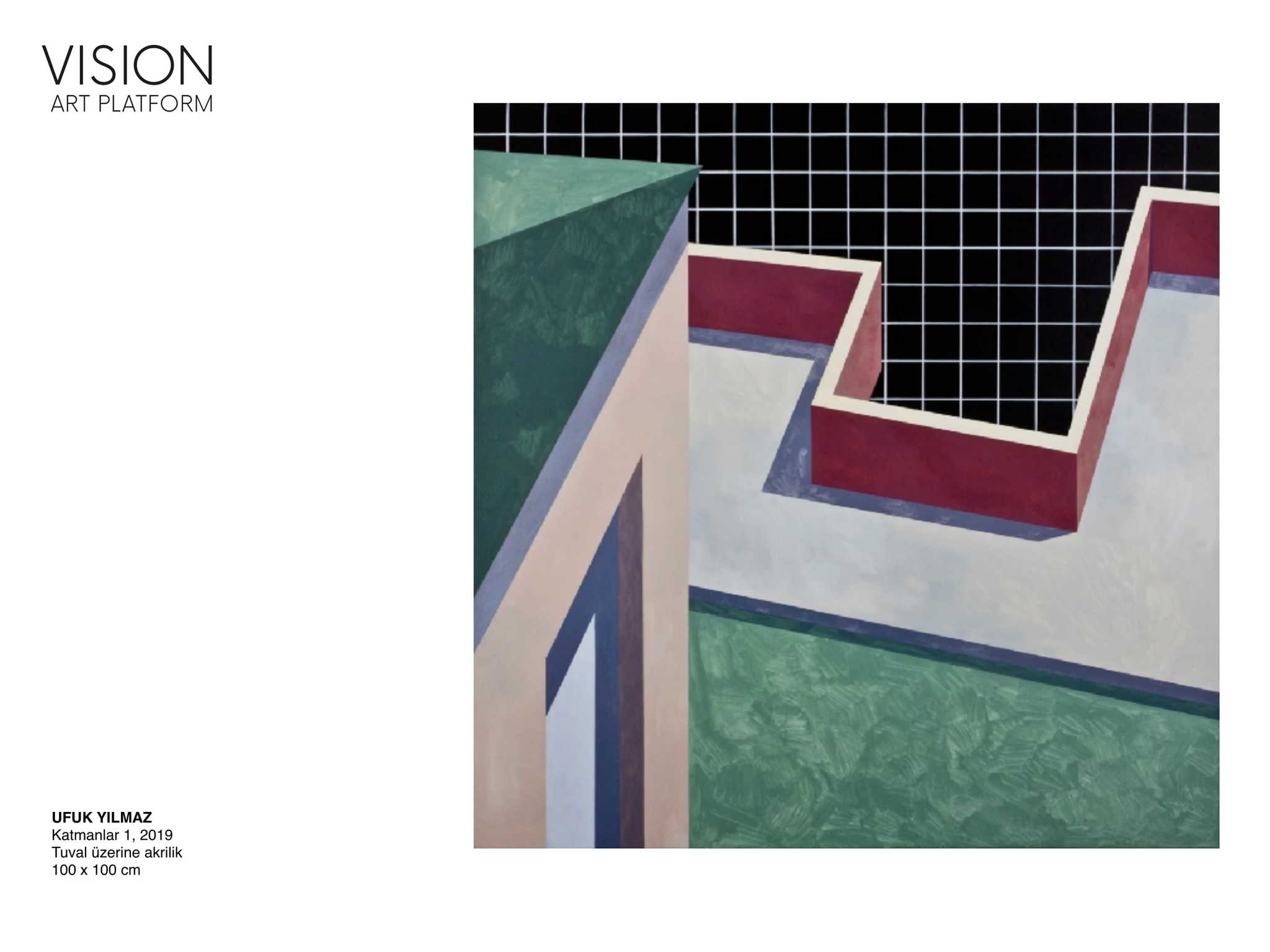 Ufuk Yılmaz soyut mimari detaylar galeri mekanın geometrisiyle ilişki içinde heykelsi nitelik kazanıyor. Sanatçının kurduğu evrende, 3D modellenmiş mekanların sonsuz uzayından Hokusai peyzajlarına, toplu konut estetiğinden Escher vari labirentlere, mimari maketlerden Edward Hopper yalnızlığına çıkılıyor.