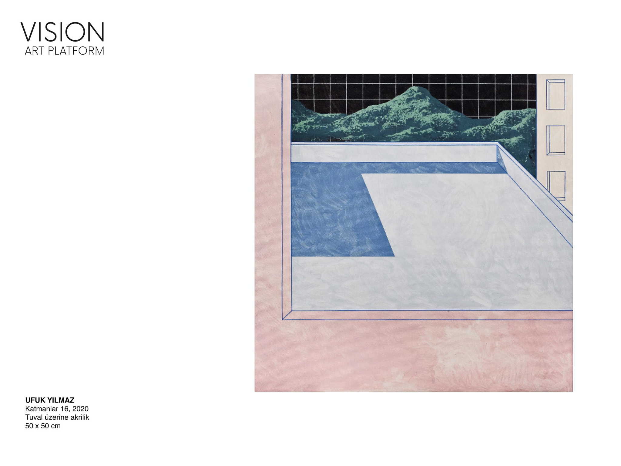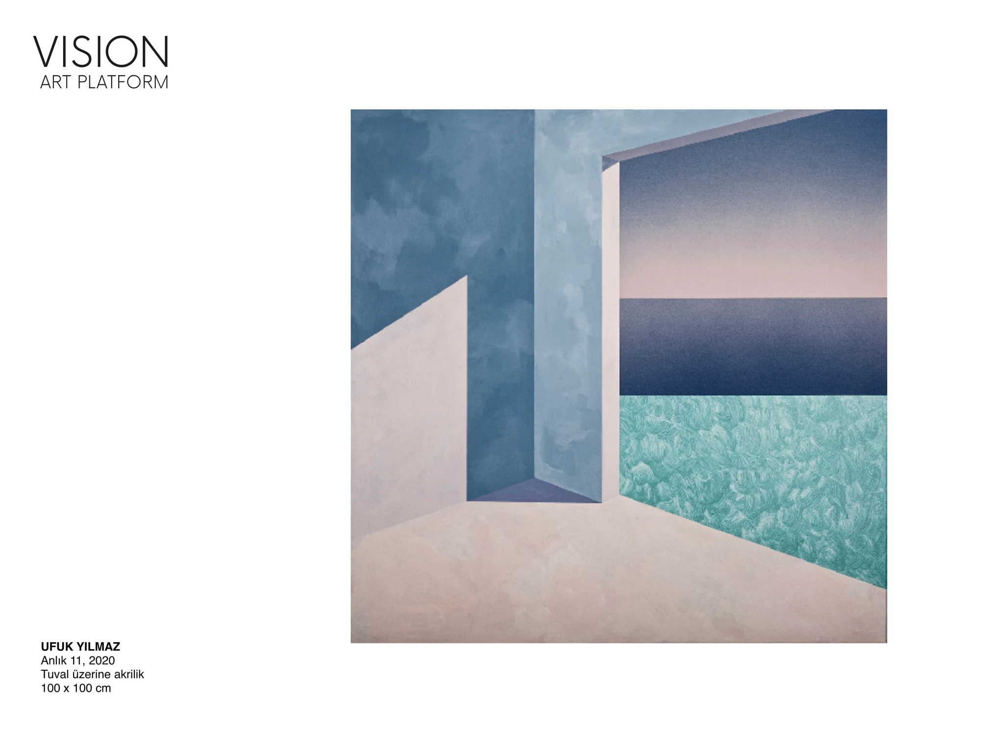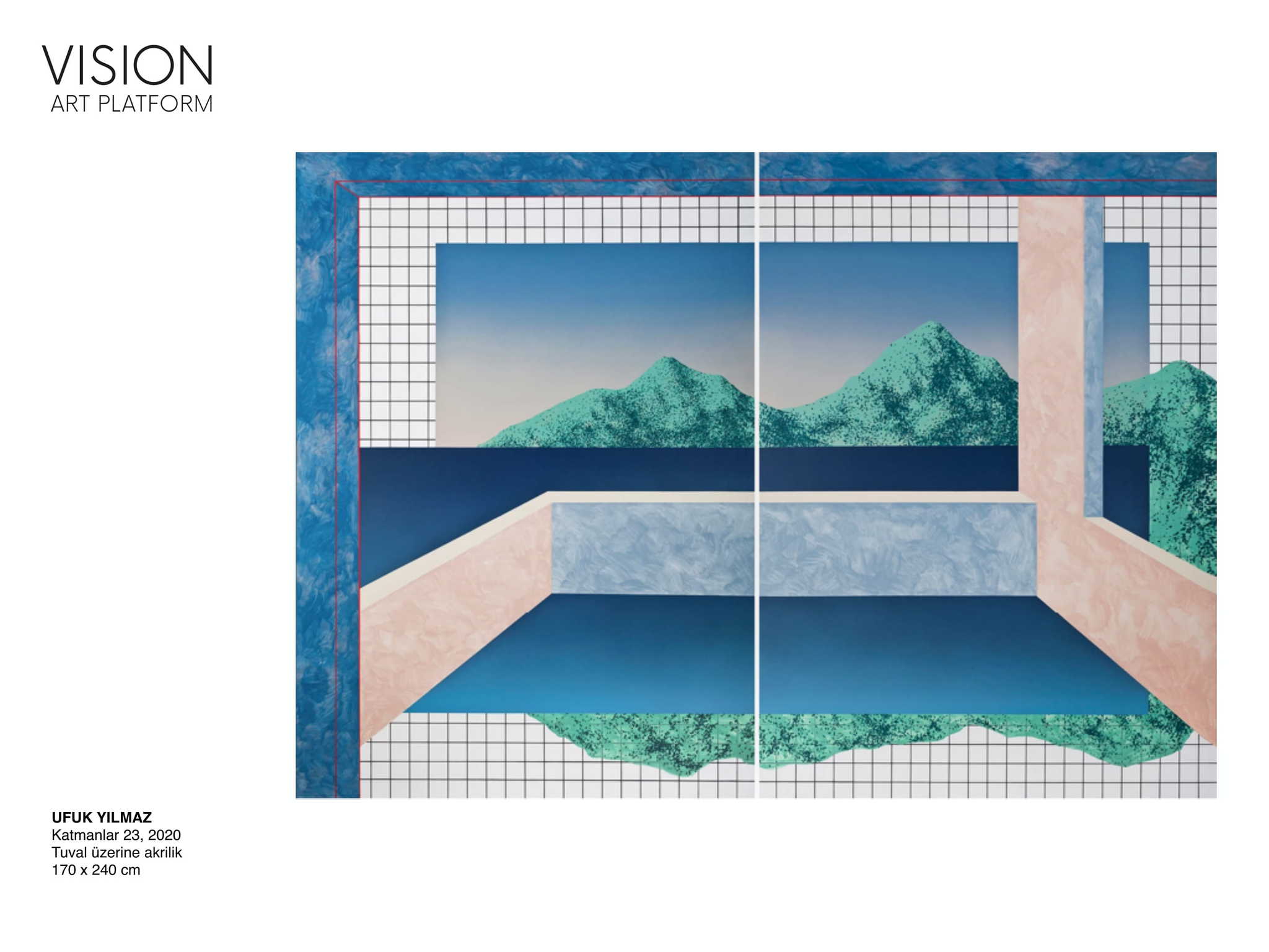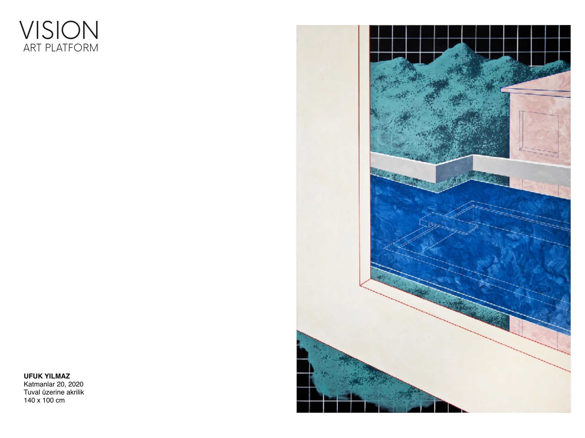 Ufuk Yılmaz soyut mimari detaylar galeri mekanın geometrisiyle ilişki içinde heykelsi nitelik kazanıyor. Sanatçının kurduğu evrende, 3D modellenmiş mekanların sonsuz uzayından Hokusai peyzajlarına, toplu konut estetiğinden Escher vari labirentlere, mimari maketlerden Edward Hopper yalnızlığına çıkılıyor.