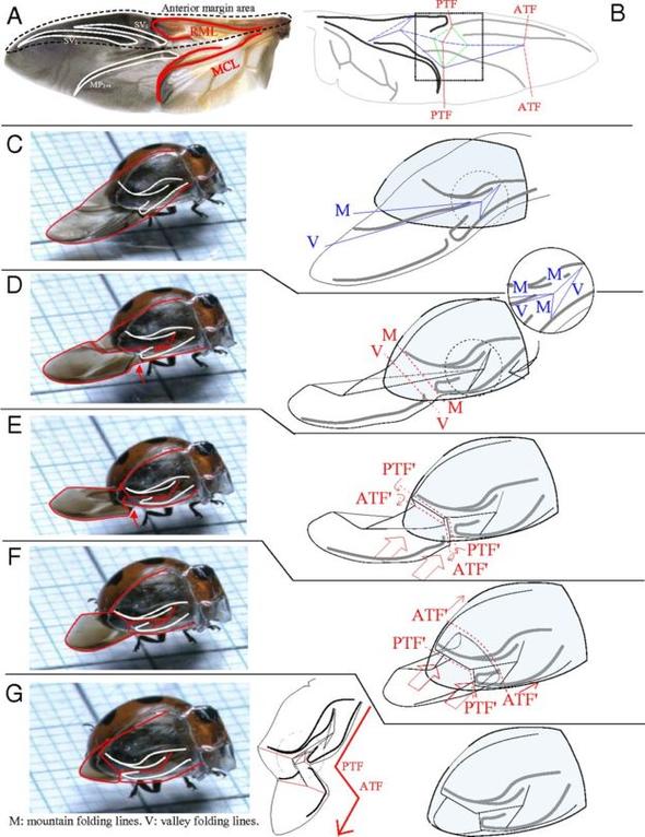Proceedings of the National Academy of Sciences (PNAS) akademik dergisinde yayınlanan makalede, vücudundan çok daha geniş olmasına rağmen, uğur böceğinin kanatlarının açılıp kapandığında 'mükemmel bir uyum' içinde canlının vücudunu sardığına dikkat çekildi.