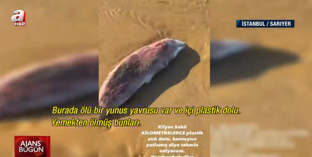 Allen, "Burası Kilyos Sahil. Kilometrelerce beyaz plastik atık dolu. Burada ölü bir yunus yavrusu var ve içi plastik dolu. Yemekten ölmüş bunları. Bunun sorumlusu kim? Temizliğini kim üstlenecek? Faturası hangi hayvanlara ve insanlara kesilecek?" ifadelerini kullandı.