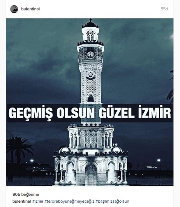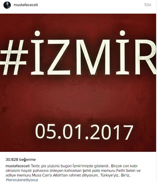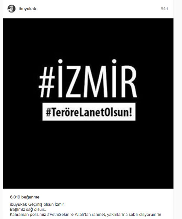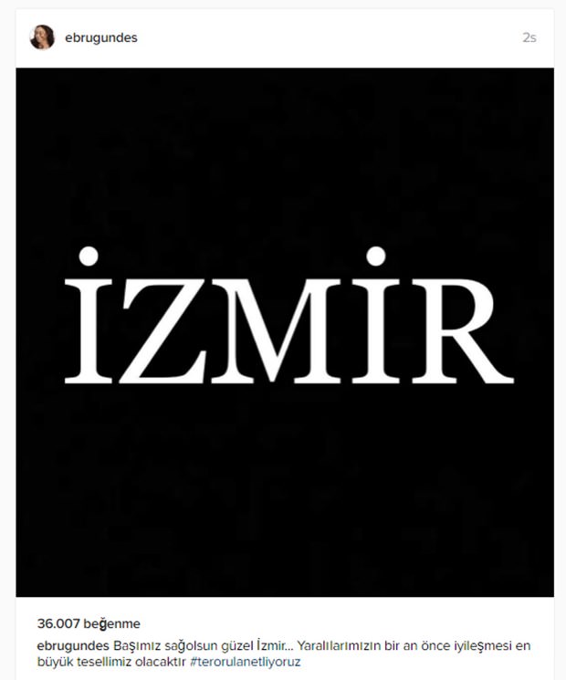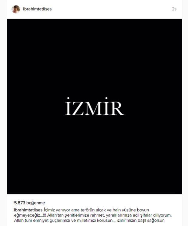 İzmir'de düzenlenen terör saldırısına sosyal medyada tepki yağdı. Ünlü isimler teröre lanet yağdırdı. İşte o paylaşımlardan bazıları...