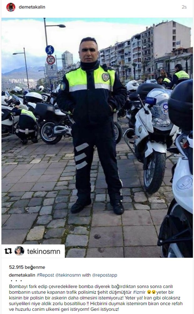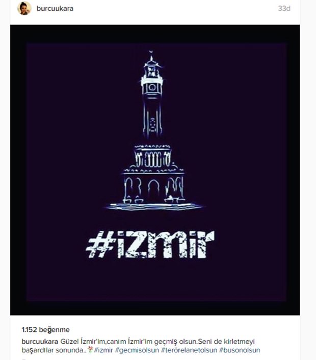 İzmir'de düzenlenen terör saldırısına sosyal medyada tepki yağdı. Ünlü isimler teröre lanet yağdırdı. İşte o paylaşımlardan bazıları... ATA DEMİRER