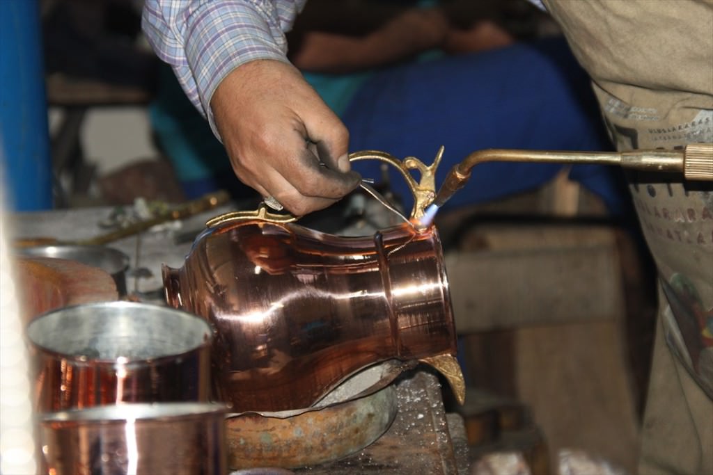 Bakır ustası Mustafa Avci (45) AA muhabirine yaptığı açıklamada, 33 yıldır şekerlik, ibrik, kase gibi malzemeler ürettiğini dile getirdi. Çocuk yaşta bakırcı ustasının yanında çalışmaya başlayan Avci, 12-13 yaşlarında girdiği atölyede 5 yıllık çıraklığın ardından tezgaha geçtiğini anlattı.