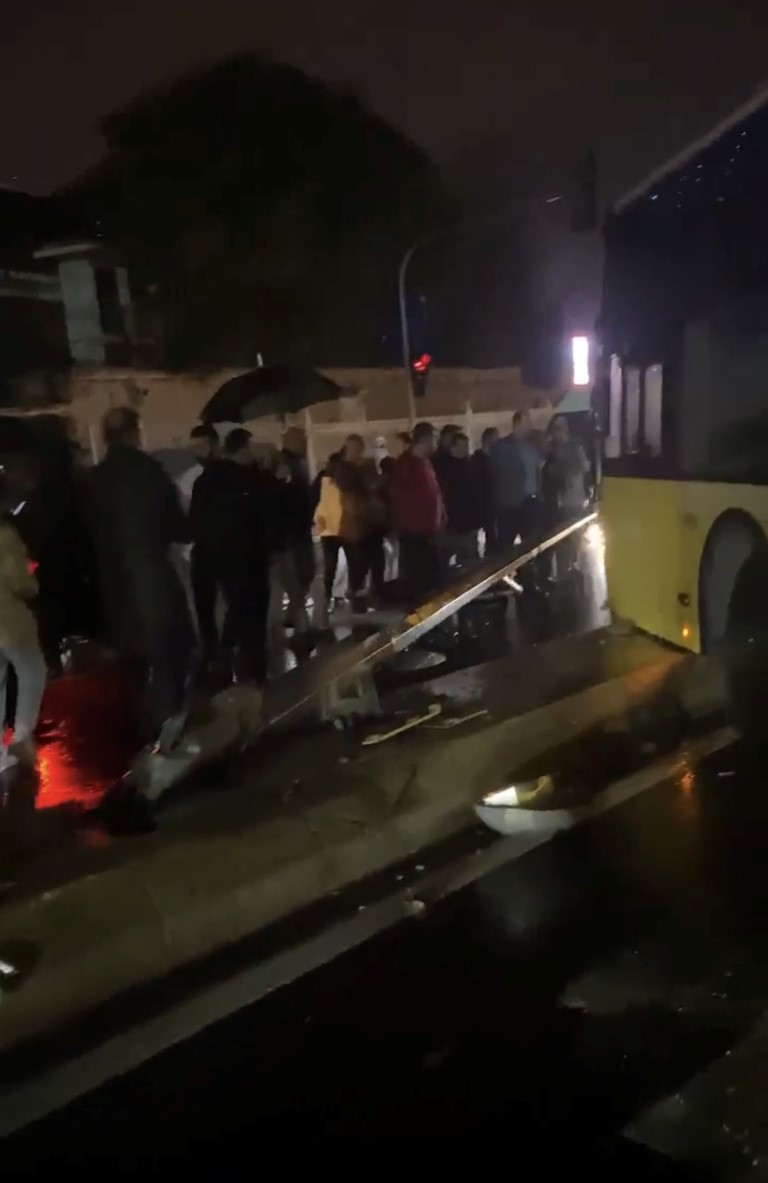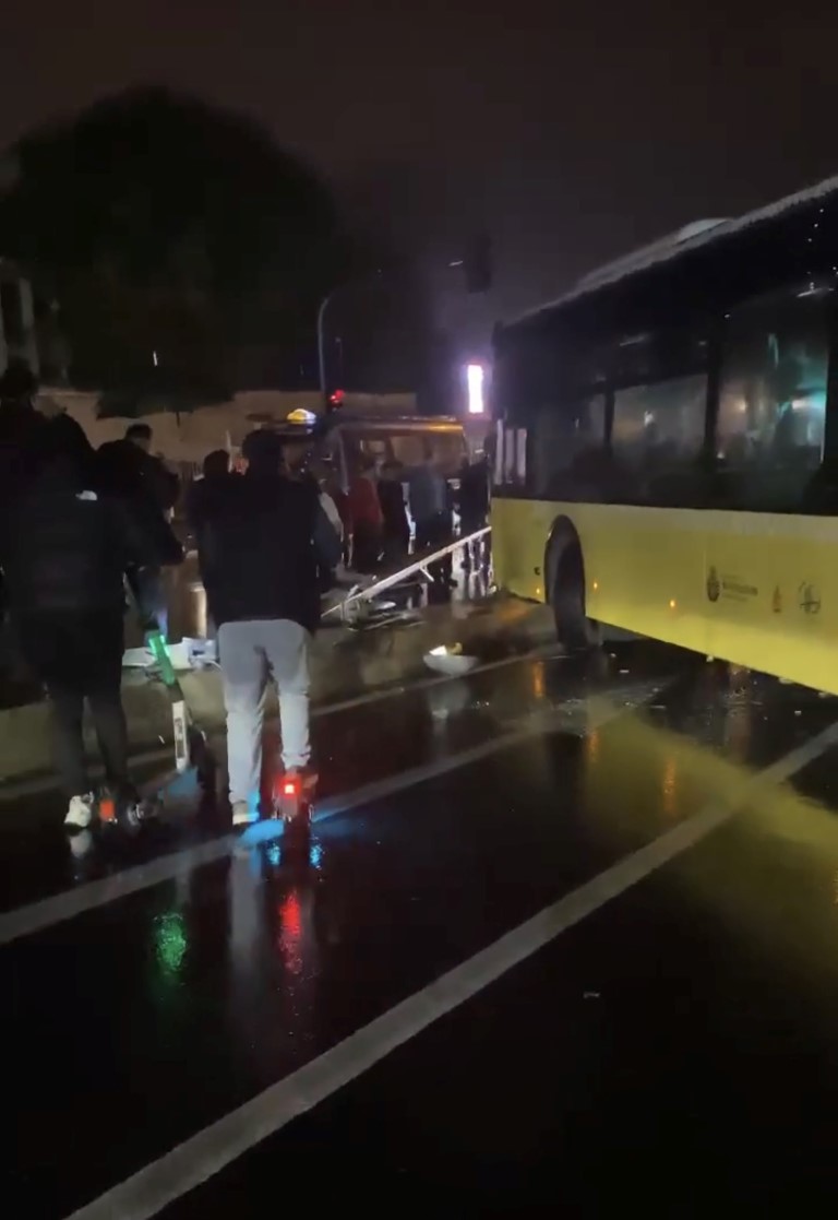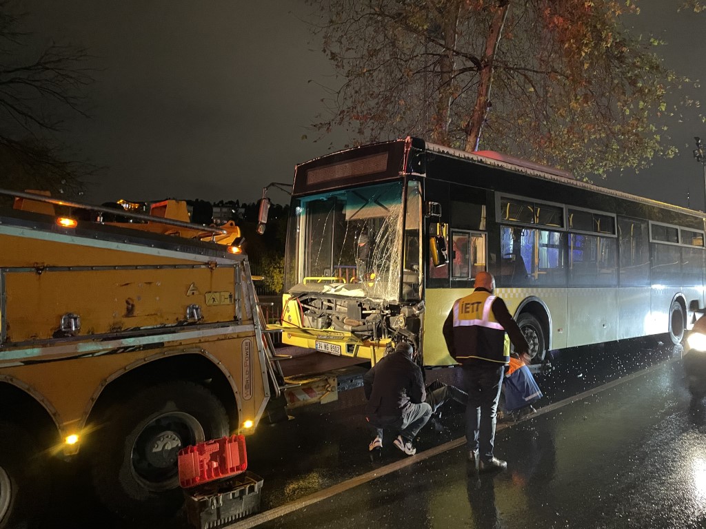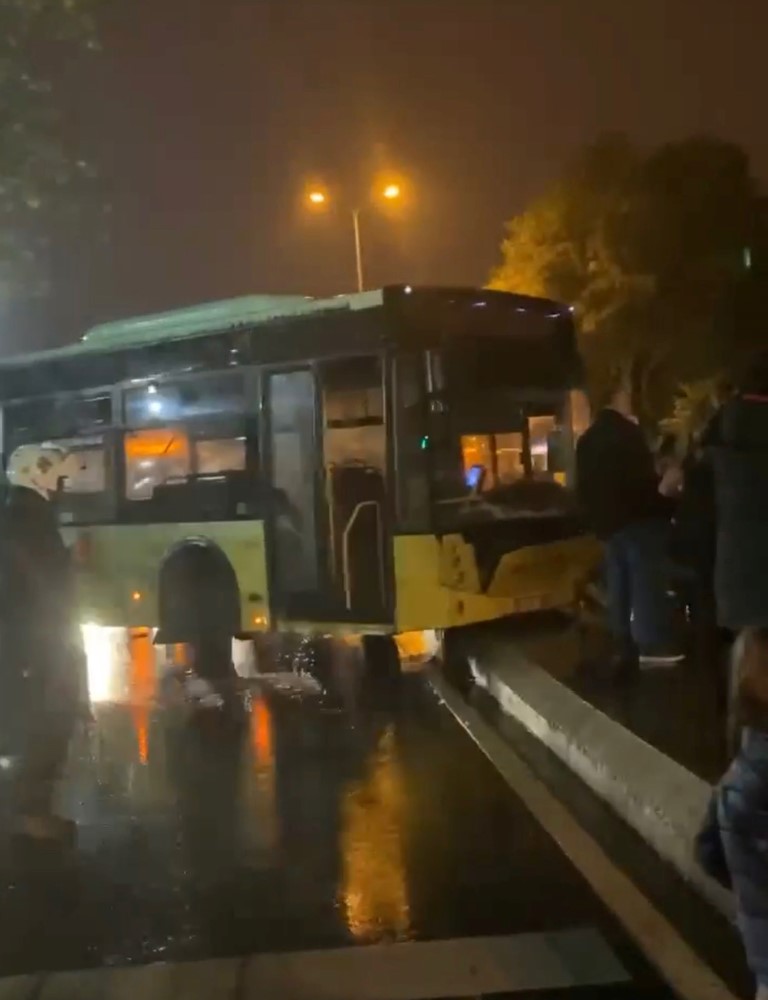 Yağış nedeniyle kayganlaşan yolda İETT otobüsünün şoförü hakimiyetini kaybetti.