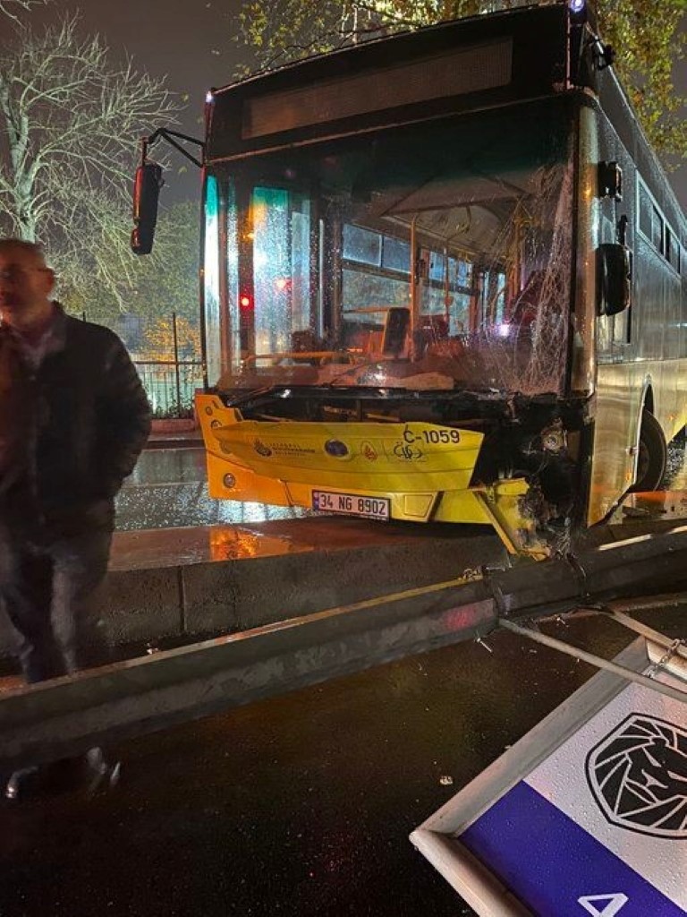 İstanbul Üsküdar'da yağış nedeniyle kayganlaşan yolda şoförünün hakimiyetini kaybettiği İETT otobüsü orta refüje ardından da aydınlatma direğine çarptı. Kazada yaralanan olmazken, yol bir süre trafiğe kapandı.