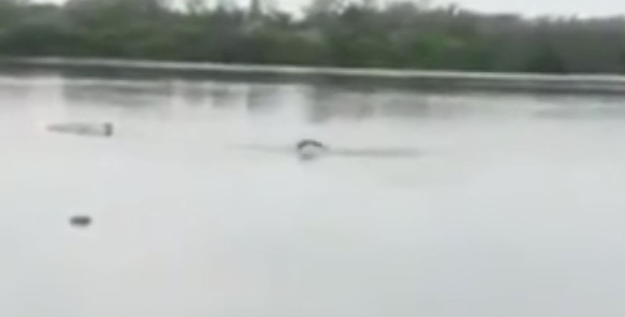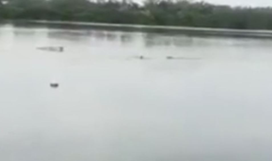 Sosyal medyada paylaşılan görüntülerde, gölde yüzen kişiye bir timsahın yaklaştığı ve adamın aniden gözden kaybolduğu görüldü.