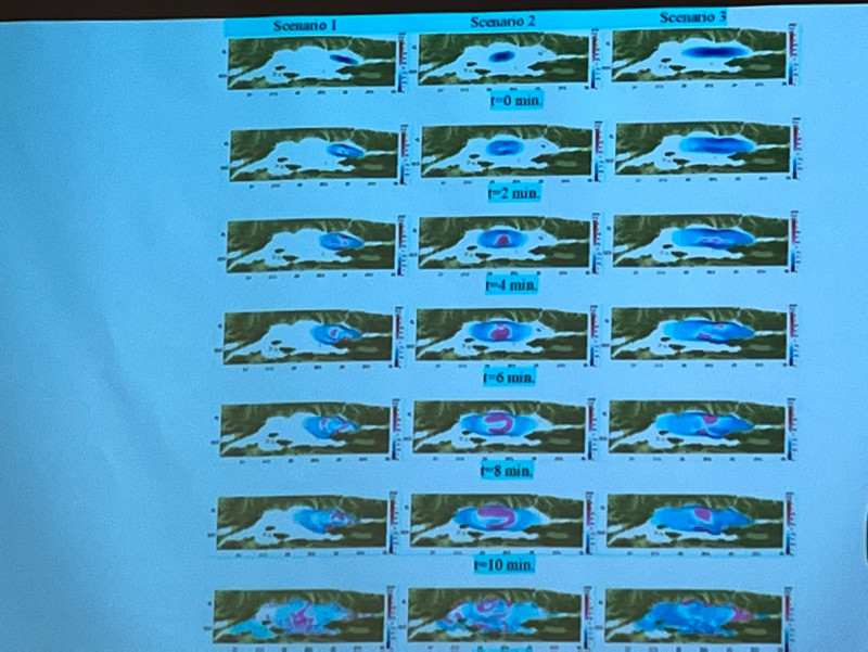 Bu durumda, kıyılarda tarihi dönemde yaşanan su hareketleri yine olabilecektir. Bu durumu ODTÜ'de bir hocamız ile modelledik. Henüz daha yayına sokmadık, ilk defa gösteriyorum. Birkaç senaryo var. Çınarcık Çukuru kırılırsa ne olacak, Orta Çukur kırılırsa ne olacak. İkisi beraber kırılırsa ne olur. Bizim modele göre, 2, 4, 6, 10 dakika süreyle su basmalarının nerelerde etkili olacağı gösteriliyor" dedi.