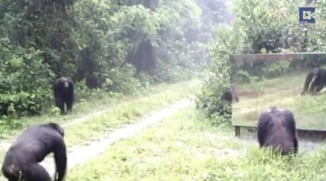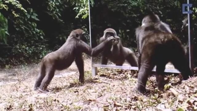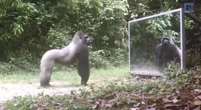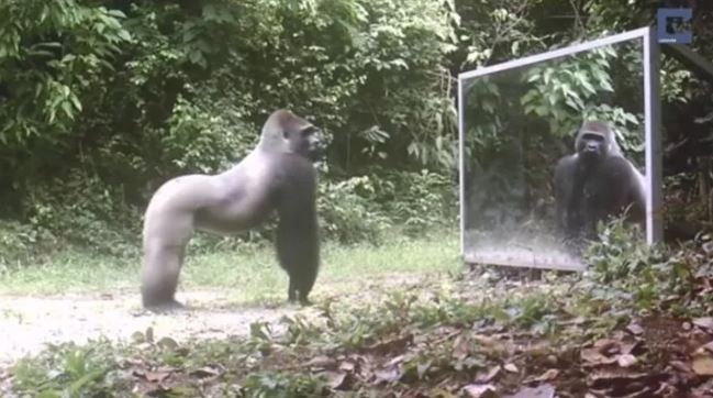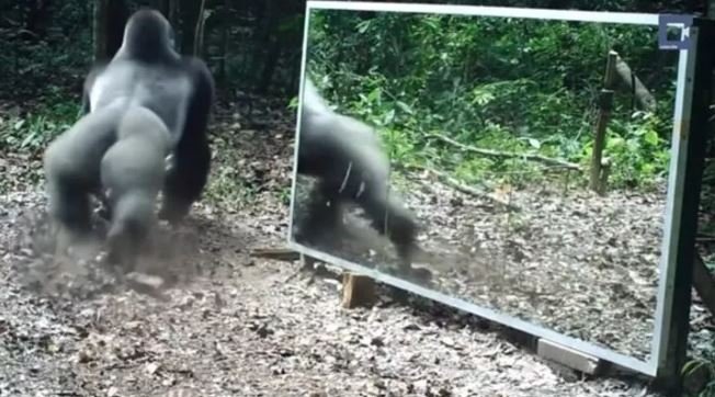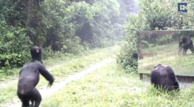 Vahşi doğada daha önce böylesi görülmedi! Goril aynada kendisini görünce saldırmaya başladı