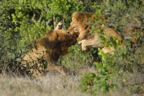 Mücadelenin sonunda genç fil, ya da turistlerin ve safari rehberlerinin verdiği isimle Herkül, zarar görmeden aslanların elinden kurtuluyor.