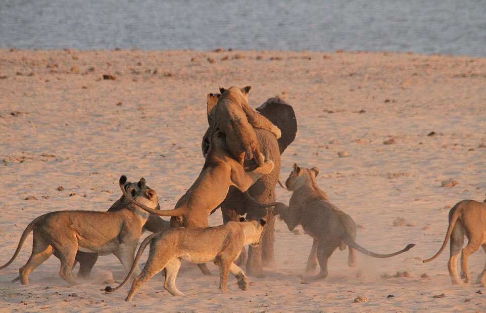 Geçtiğimiz aylarda Güney Luangwa Ulusal Parkı'nın ziyaretçileri, bir dişi aslan sürüsünün genç bir file saldırmasına tanık oldu ve bu saldırıyı filme aldı.